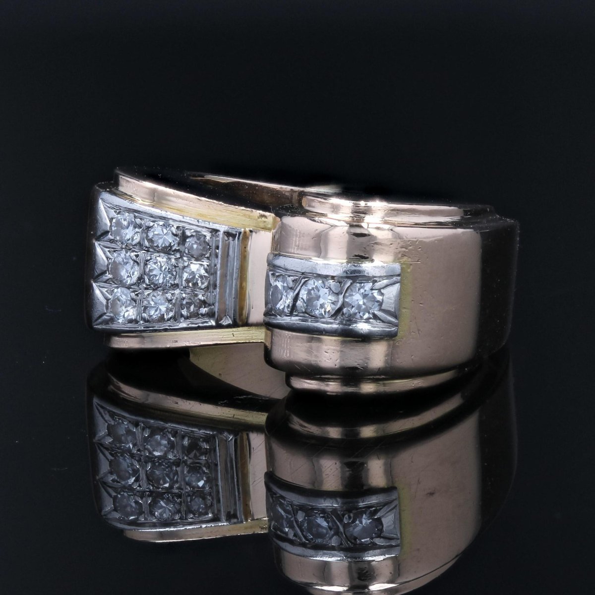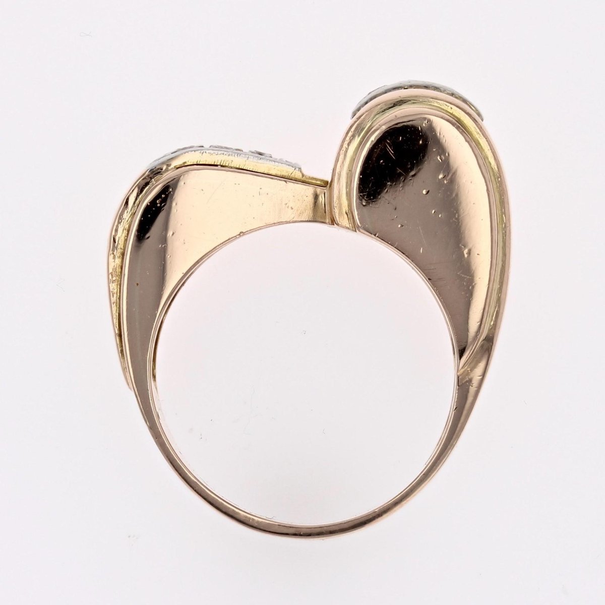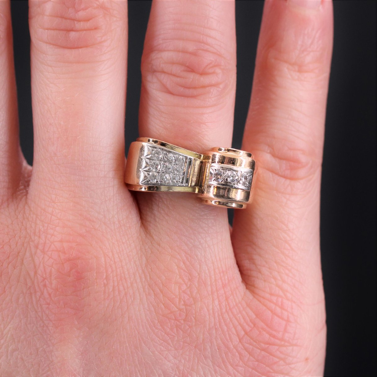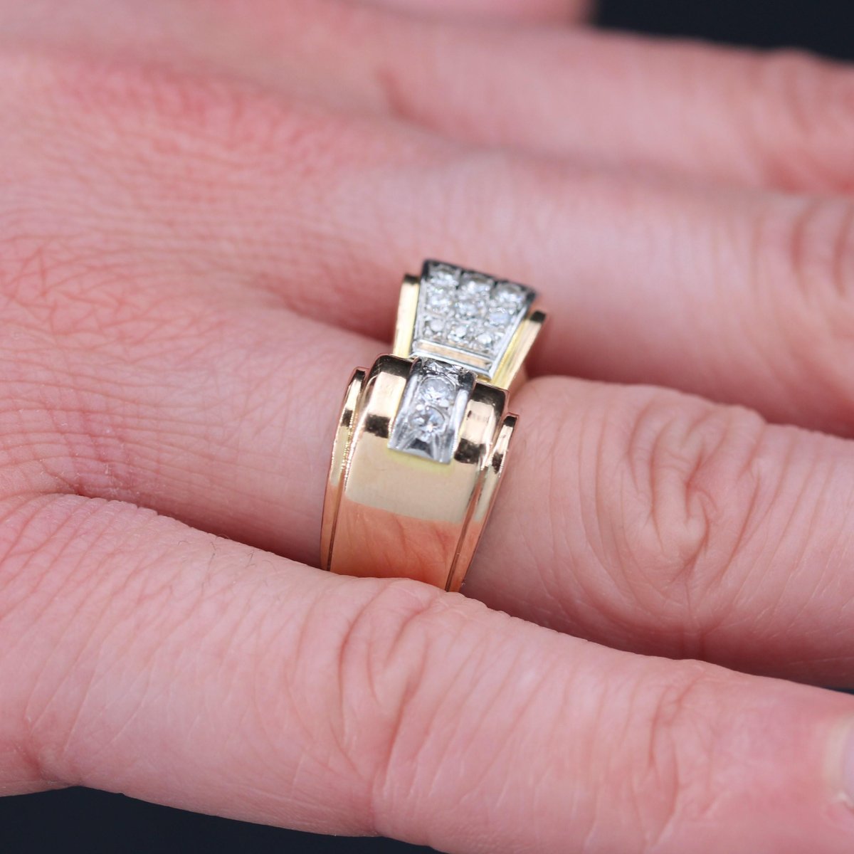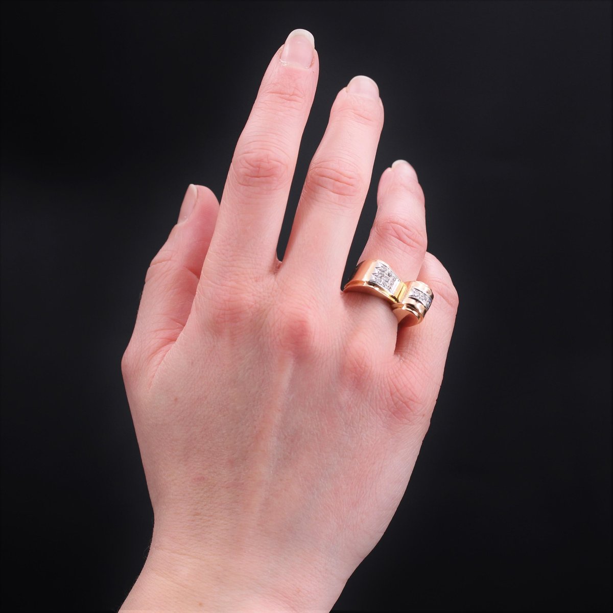 18 Karat Yellow Gold & Diamond Asymetrical Tank Ring, 1950s