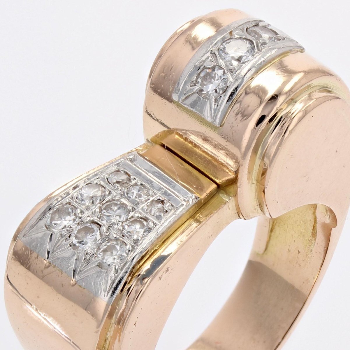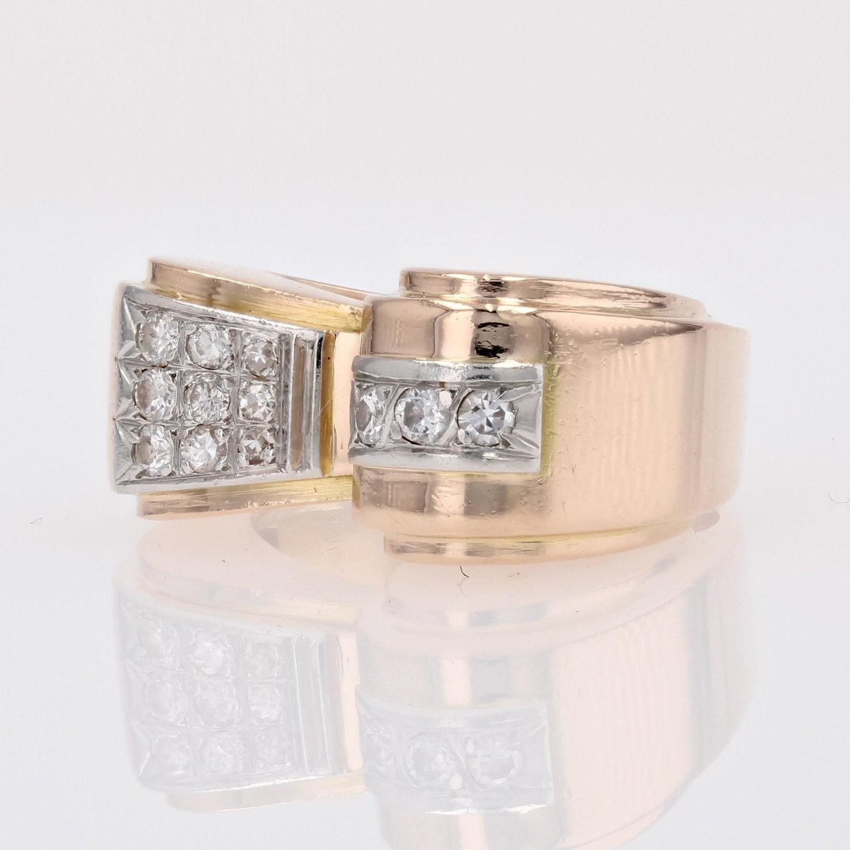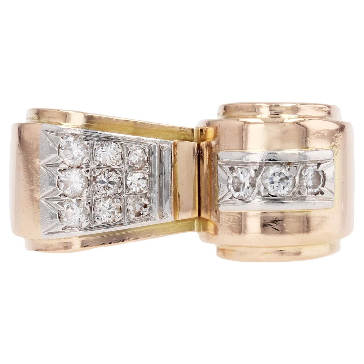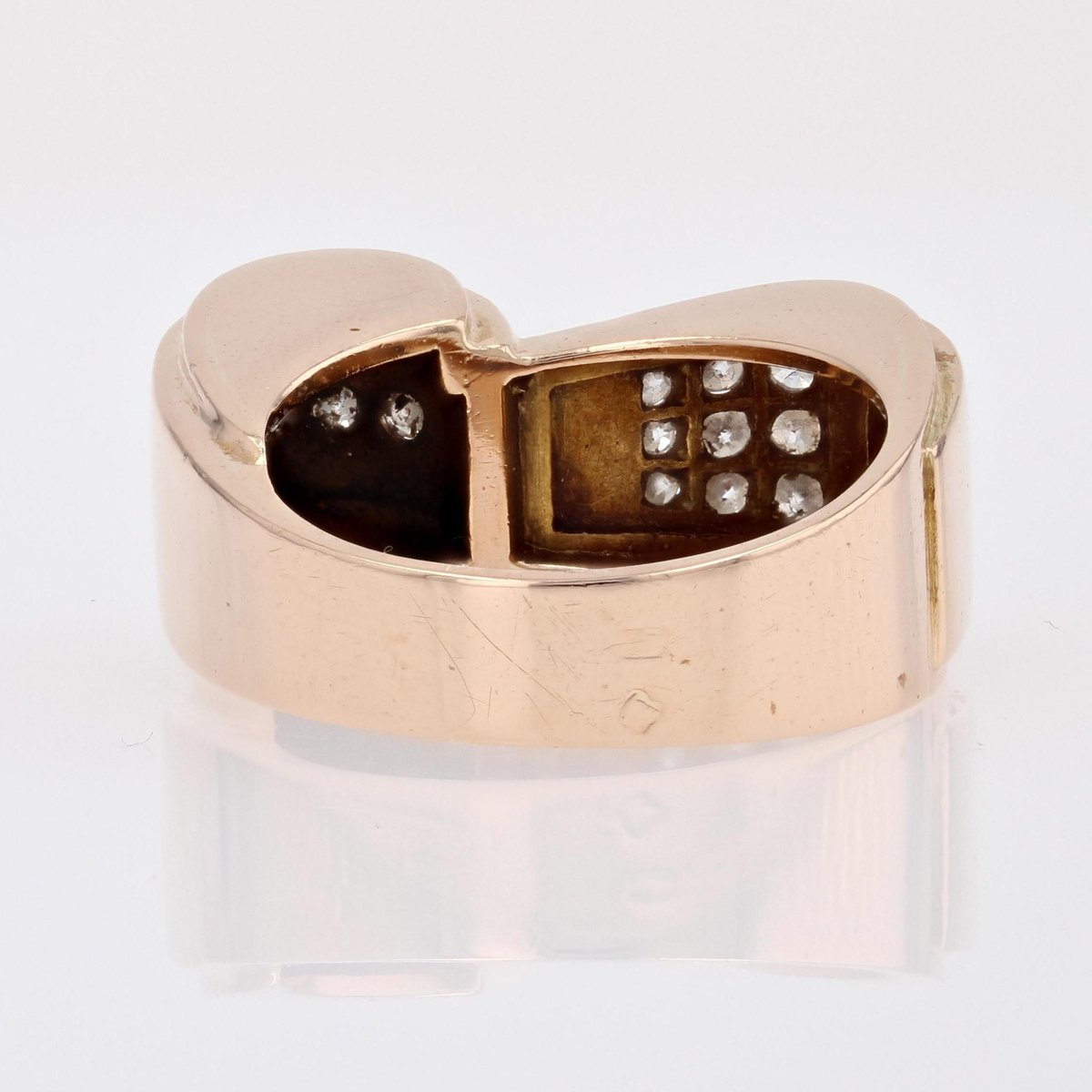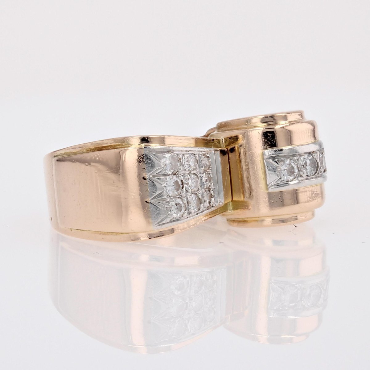18 Karat Yellow Gold & Diamond Asymetrical Tank Ring, 1950s