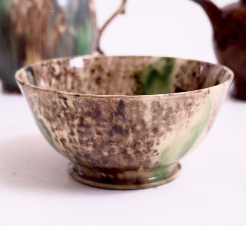 18th Century Teapots and Bowl Faience with Tortoiseshell Decorations from Wieldon, Set of 4