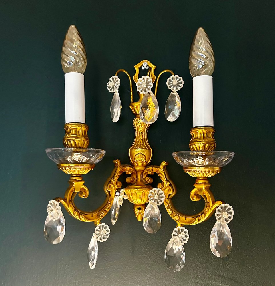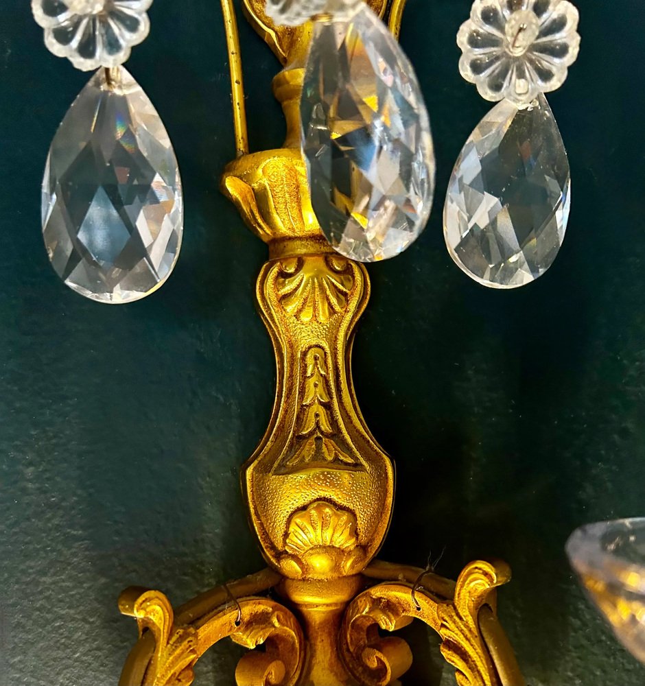 19th Century Louis XVI Wall Sconces in Gilt Bronze & Crystal, 1880s, Set of 2