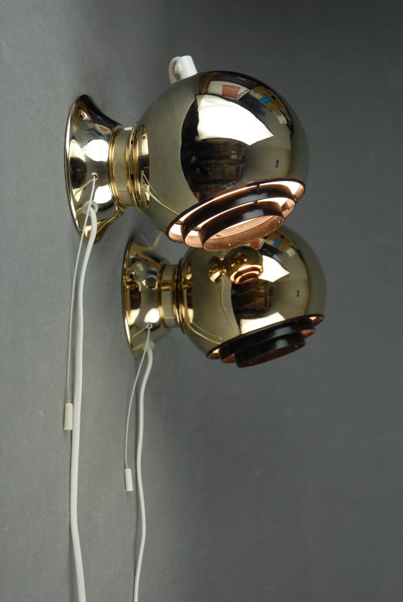 24 Carot Gold-Plated Magnetic Eyeball Wall Lamps from Abo Rangers, Denmark, Set of 2