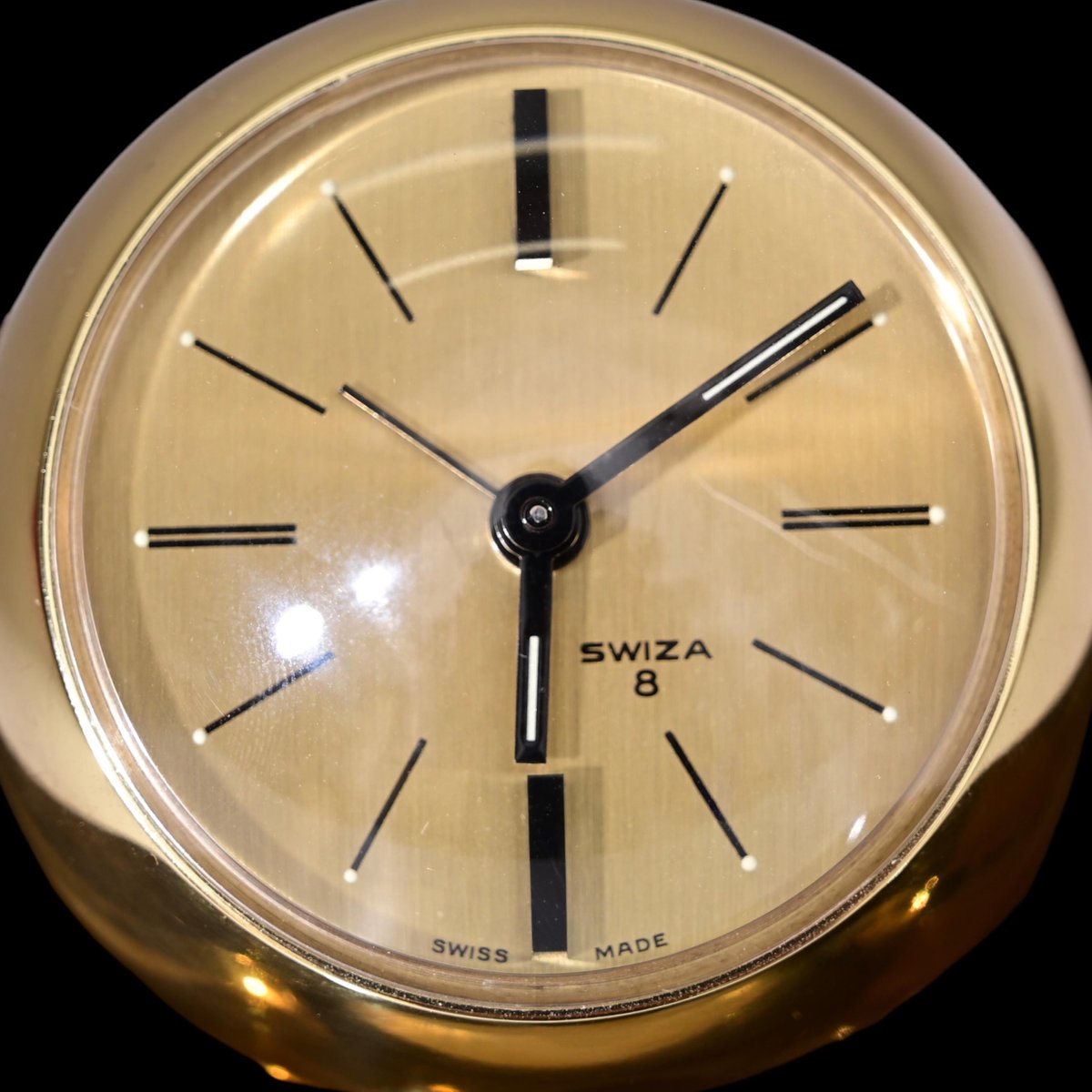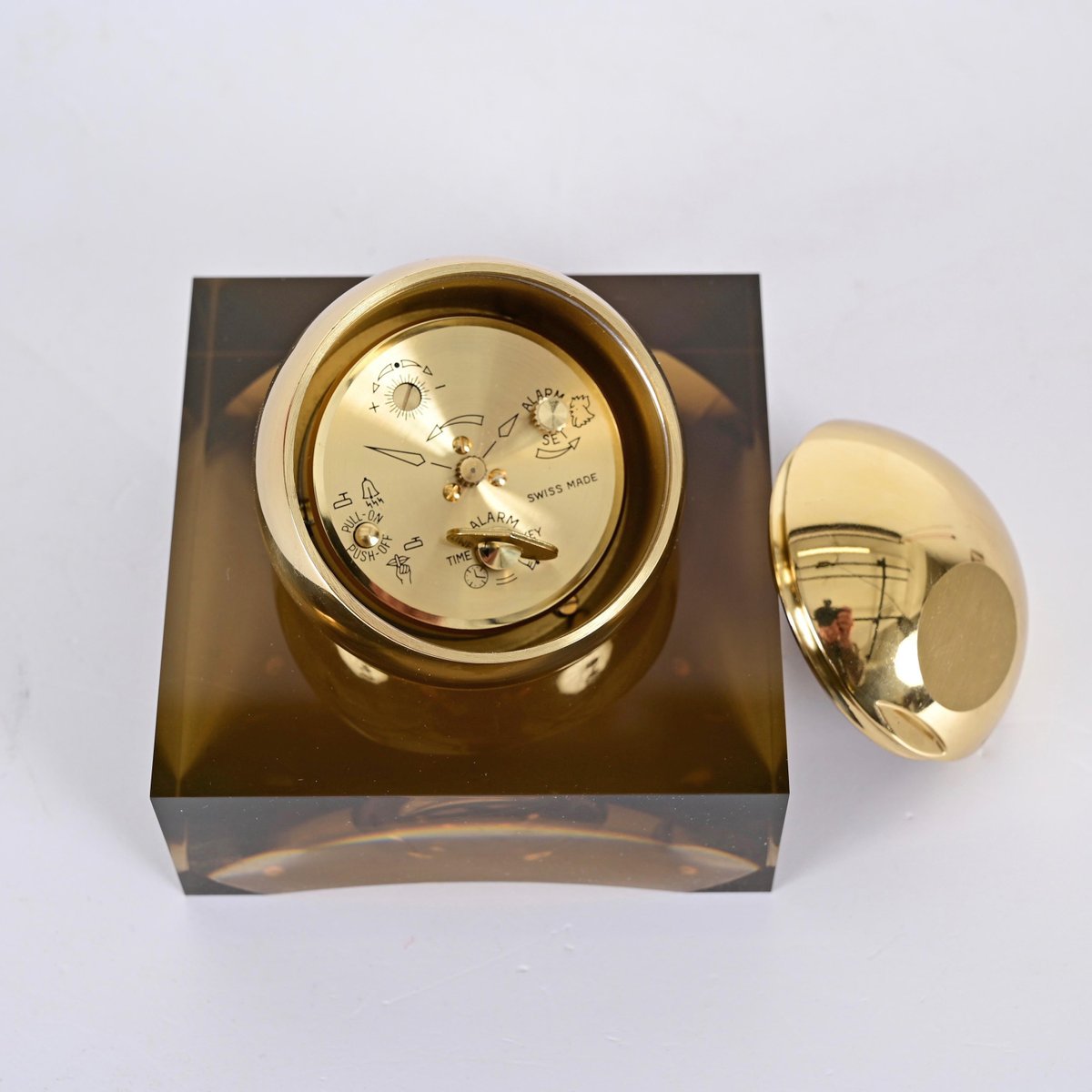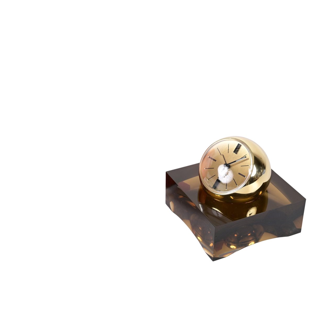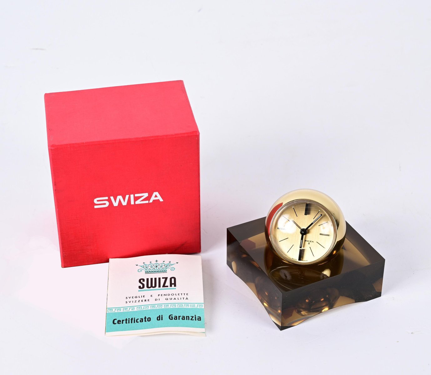 8 Day Gilt Sphere Clock with Smoked Acrylic Glass Base in Box from Swiza, 1970s