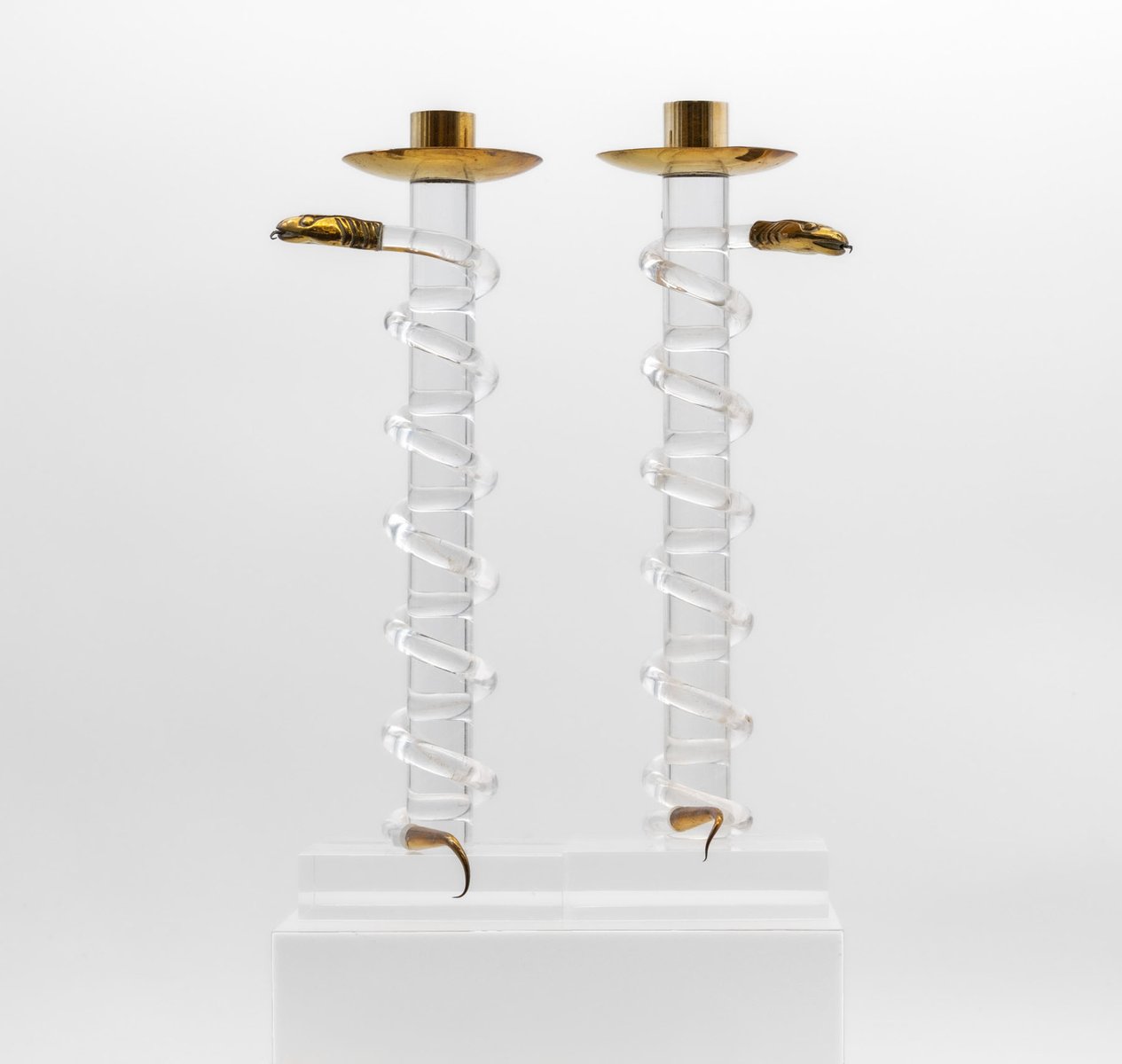 Acrylic and Brass Serpent Snake Candlesticks by Alessandro Albrizzi, 1970s, Set of 2