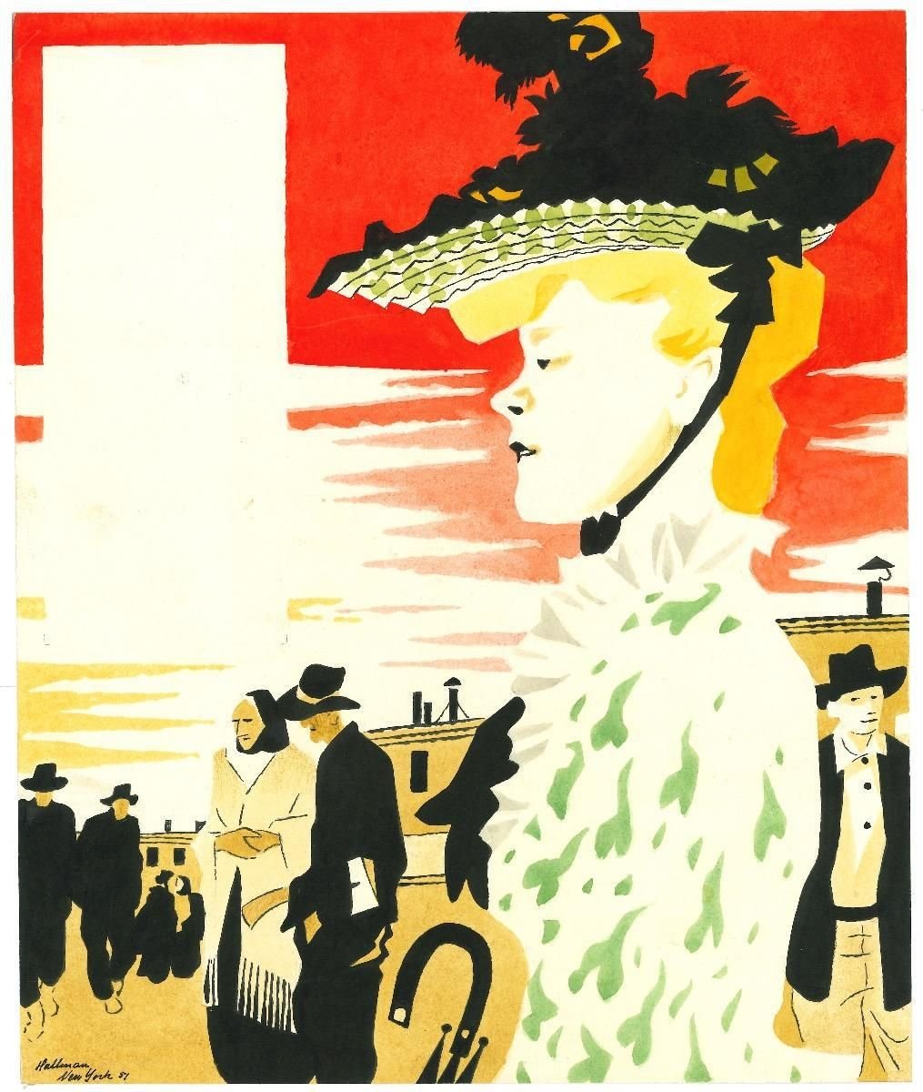 Adolf Reinhold Hallman, New Yorker, Ink, Watercolor and Pencil Drawing, 1956
