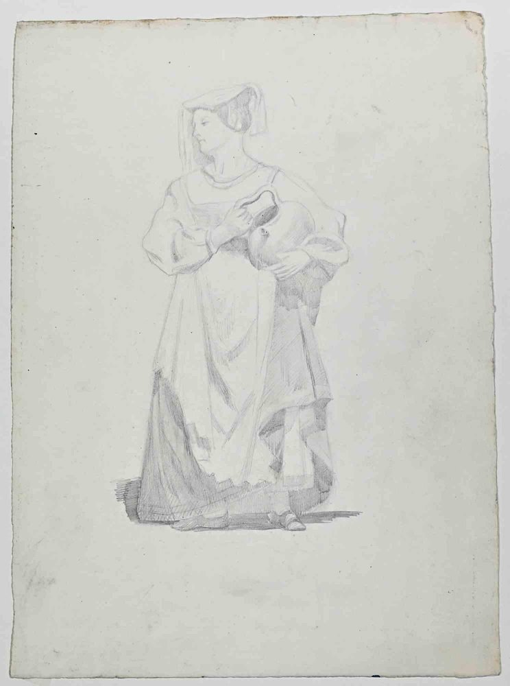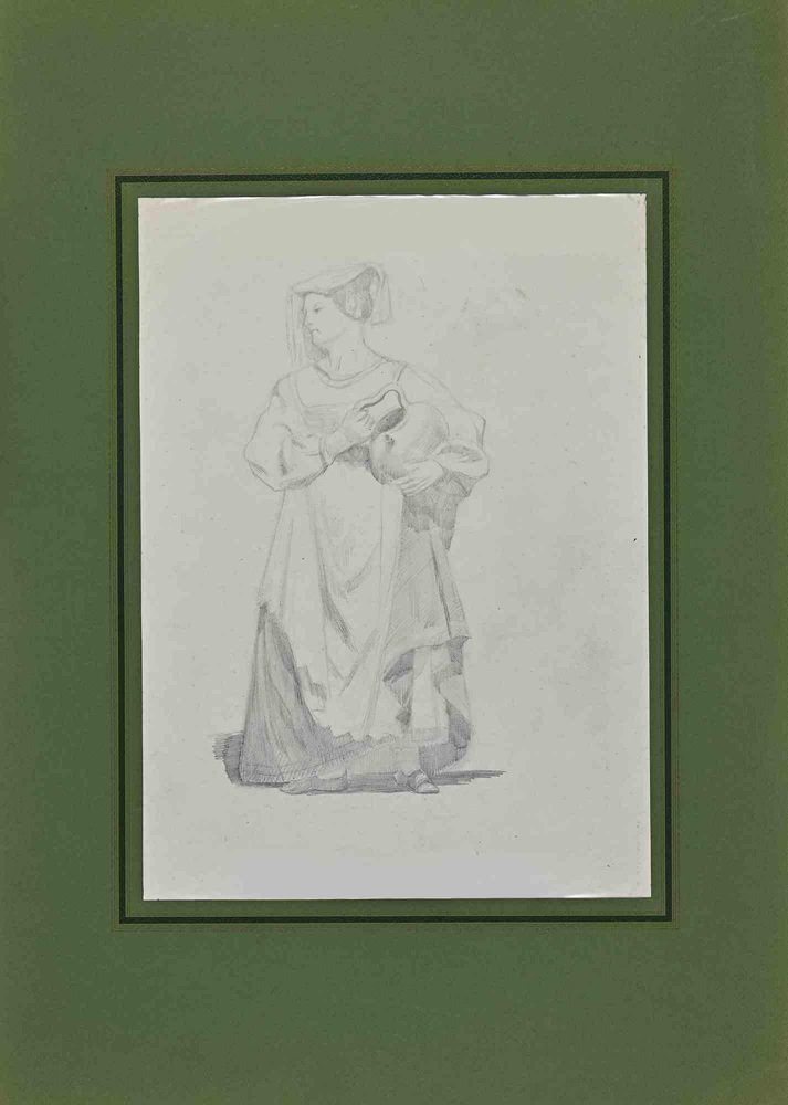 Adolphe Etienne Viollet-Le-Duc, Woman, Original Drawing on Paper, Mid 19th-Century