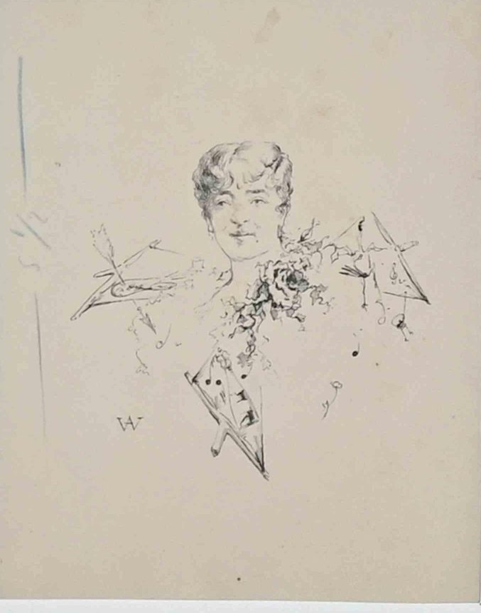 Adolphe Willette, The Lady, Ink on Paper, Late 19th Century