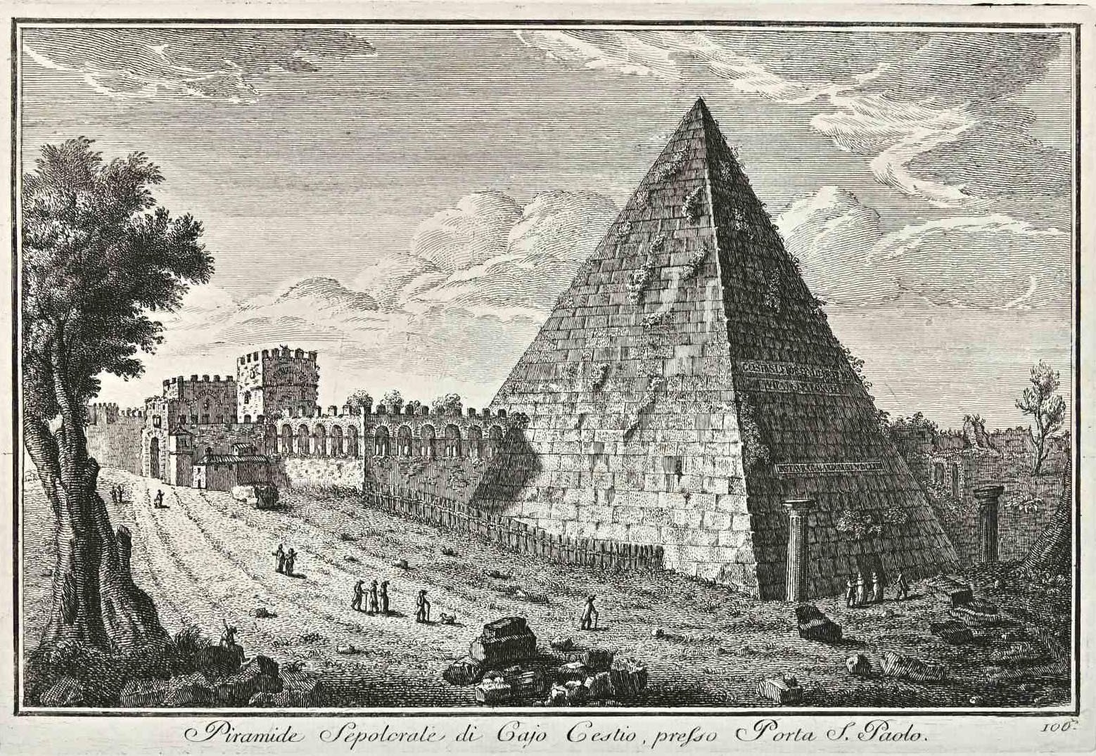 After Giuseppe Vasi, Piramide, Porta S.Paolo, Etching, 18th Century
