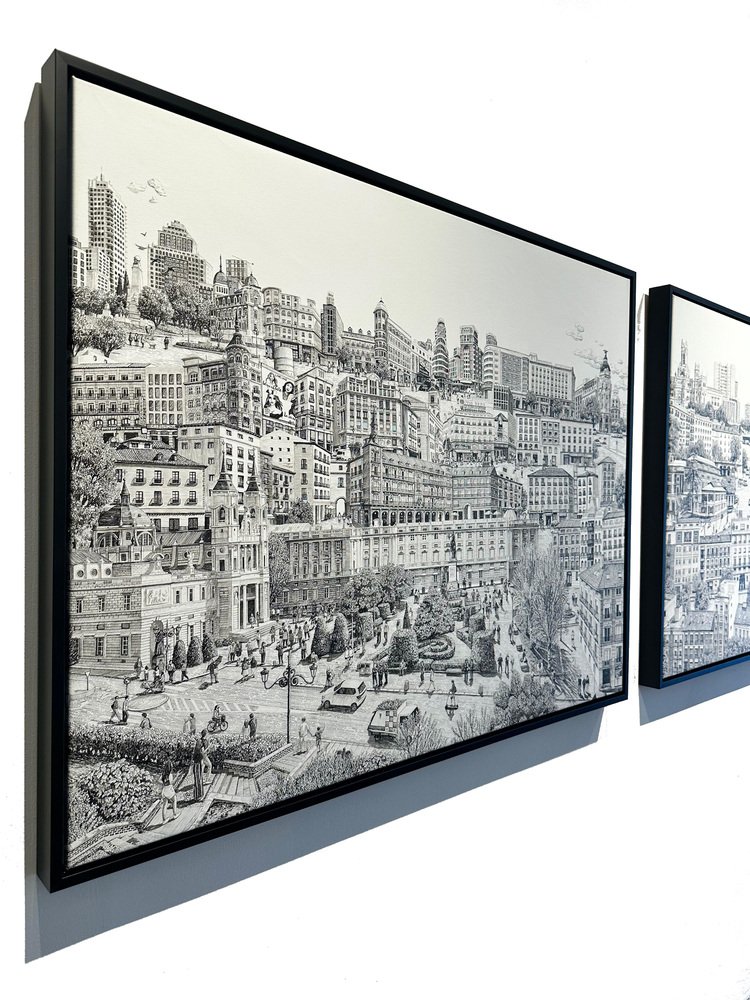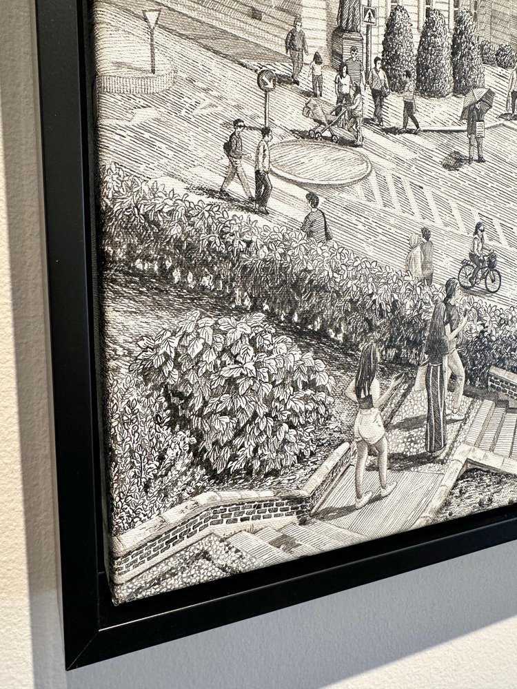 Alina Muressan, Madrid Retiro, Ink and Brush on Canvas, 2024