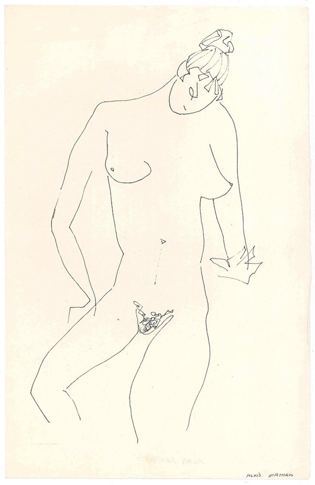 Alkis Matheos, Sketched Female Nude, Original China Ink on Paper