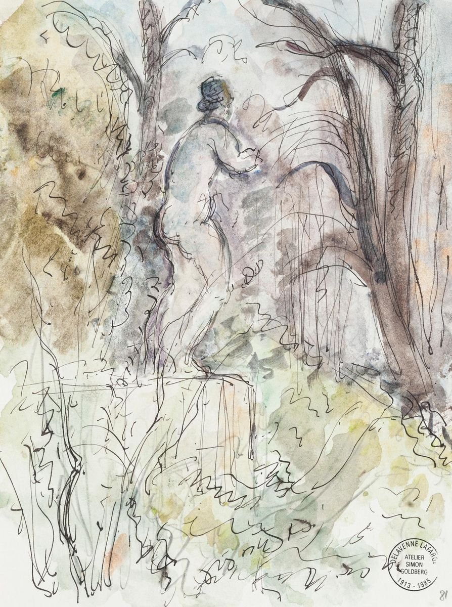 Alone in the Forest - Original Ink and Watercolor by S. Goldberg - 1950s 1950s