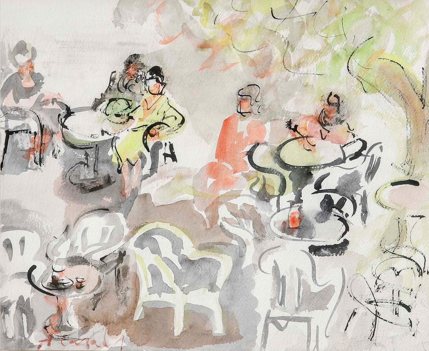 Amadeu Casals, Under the Trees, Watercolor on Paper, Framed