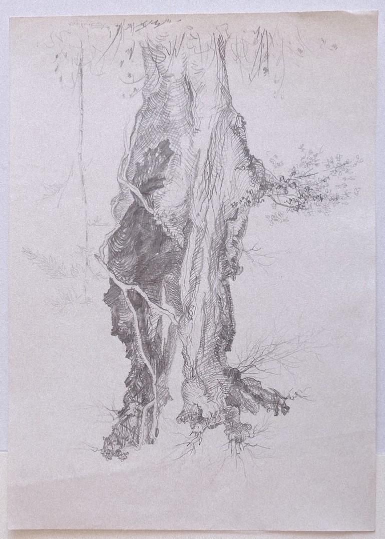 André Roland Brudieux, Tree, Pencil Drawing, 1970s