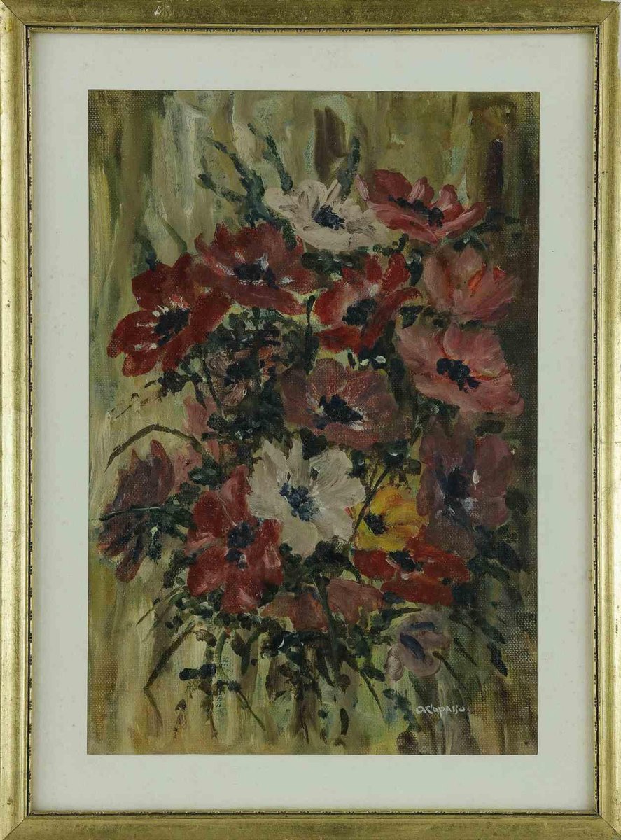 Andrea Capasso, Flowers, 20th-Century, Oil on Board, Framed