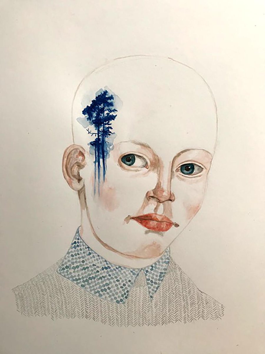 Anne Siems, Forest Lover II, Portrait Painting with Tattoo Drawing, Paper, 2020