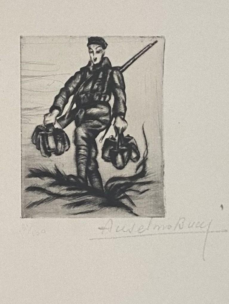 Giacomo Porzano, Profile, Original Etching, 1972