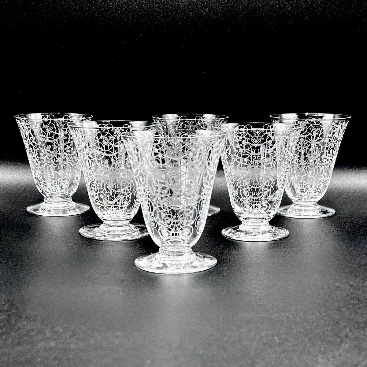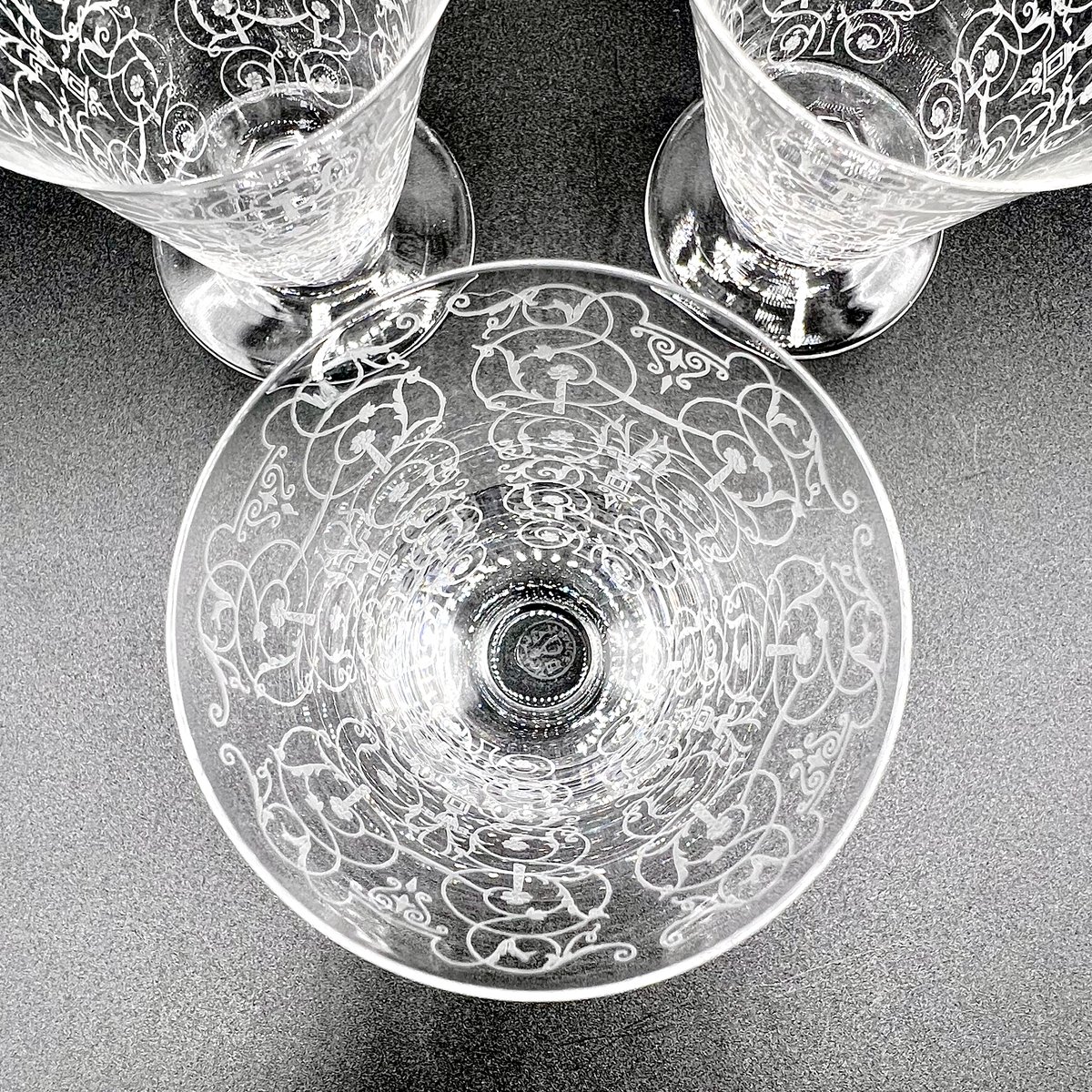 During the 1920s and 1930s, Baccarat modernized its look with pieces like the Paraison Collection, commissioned in 1933 for the Maharajah of Indore’s Manik Bagh Art Deco palace, and monogrammed glasses from the François Villon Collection, commissioned in 1936 by President Franklin D. Roosevelt.