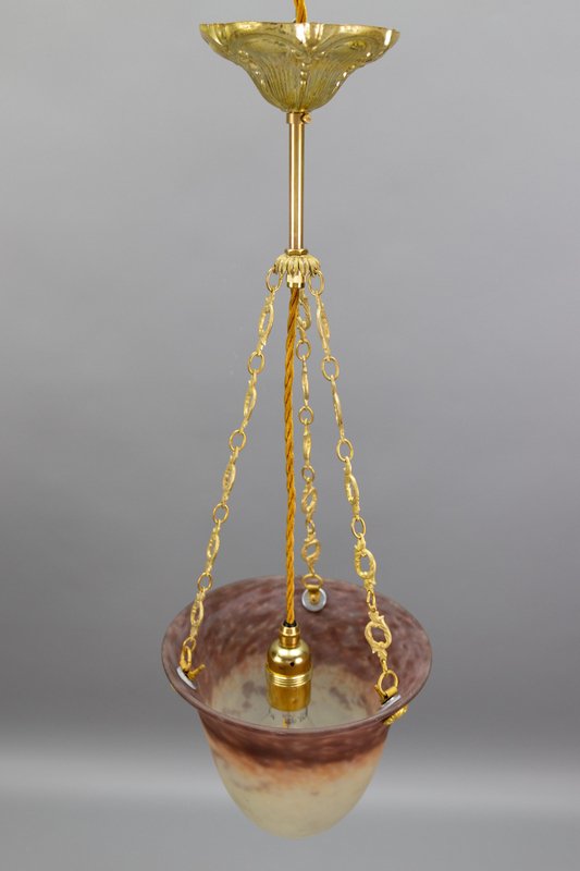 Antique French Art Nouveau Pendant Light with Glass by Muller Frères Luneville
