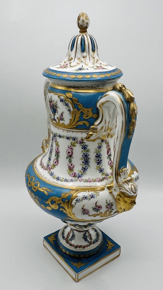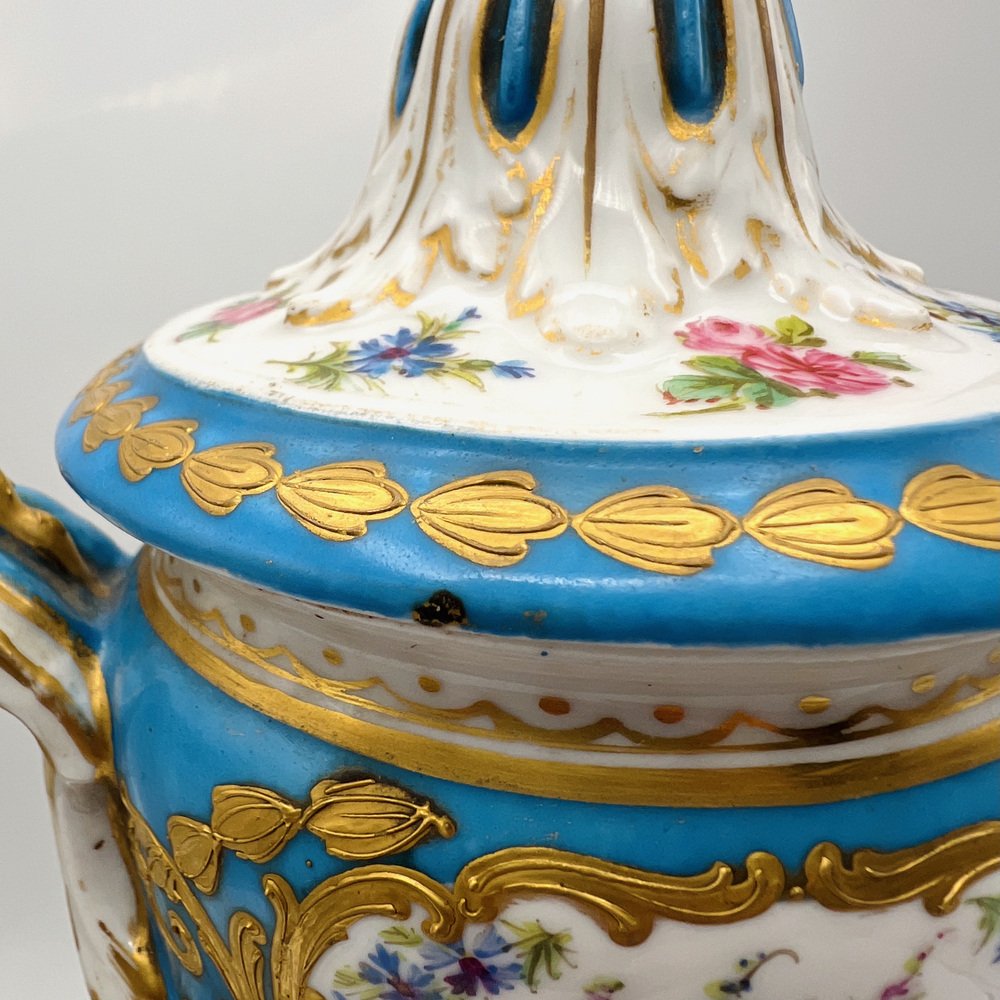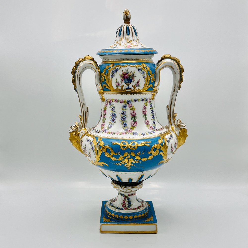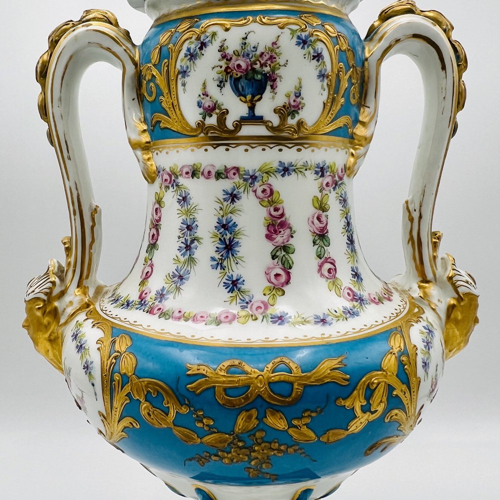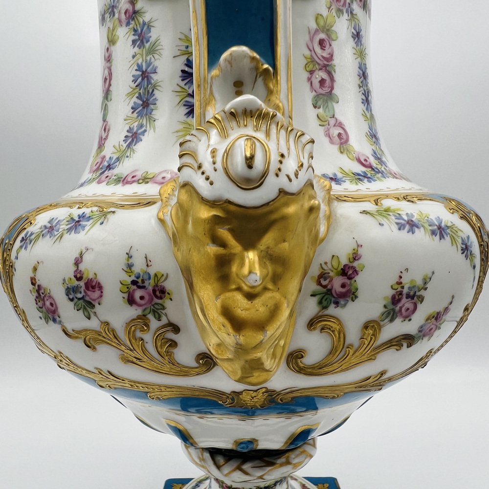 Antique French Sevres Style Porcelain Double Handled Urn
