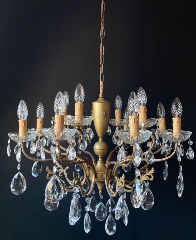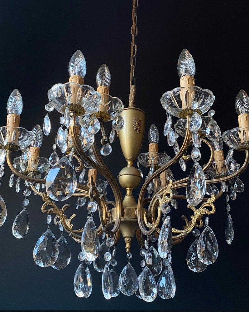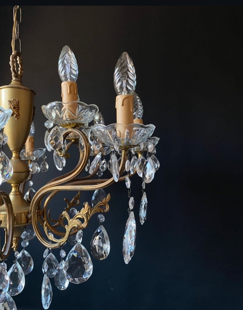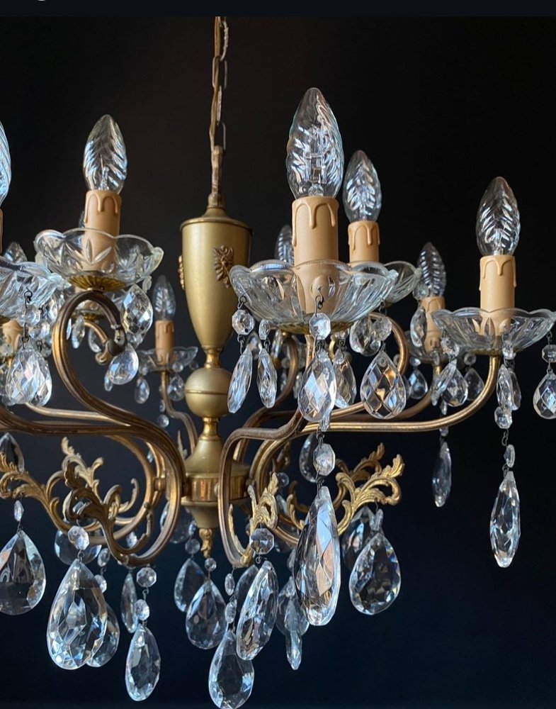 Antique Italian Chandelier with Crystal Pendants, 1940s