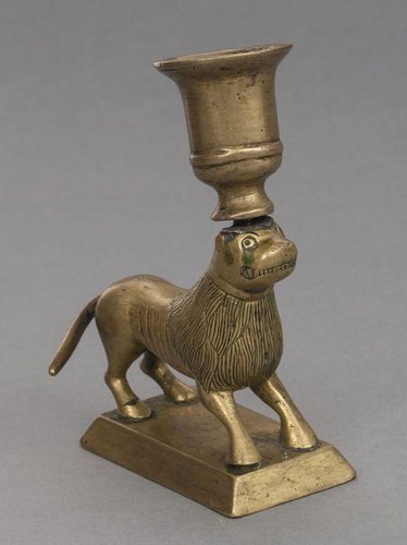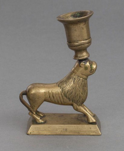 Antique Jewish Judaica Bronze Lion Candleholder