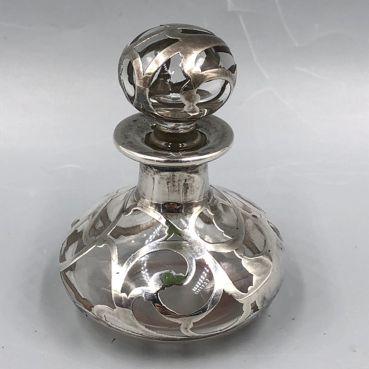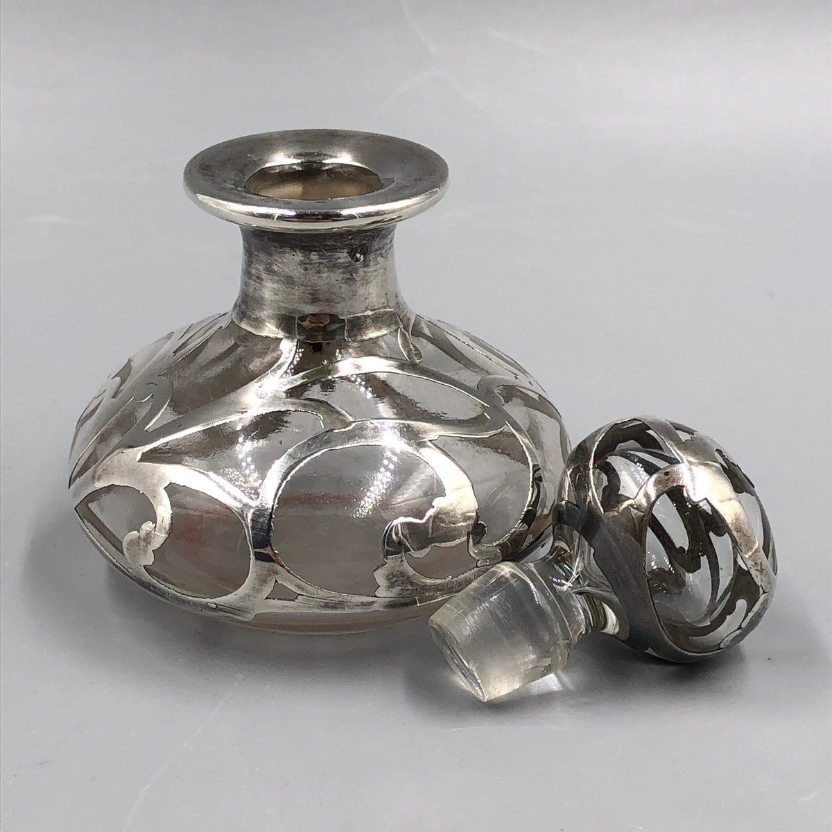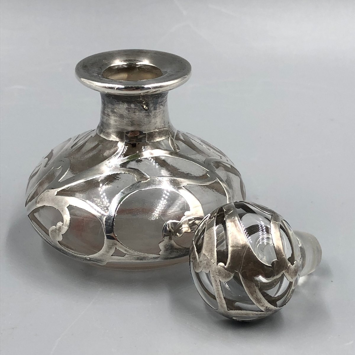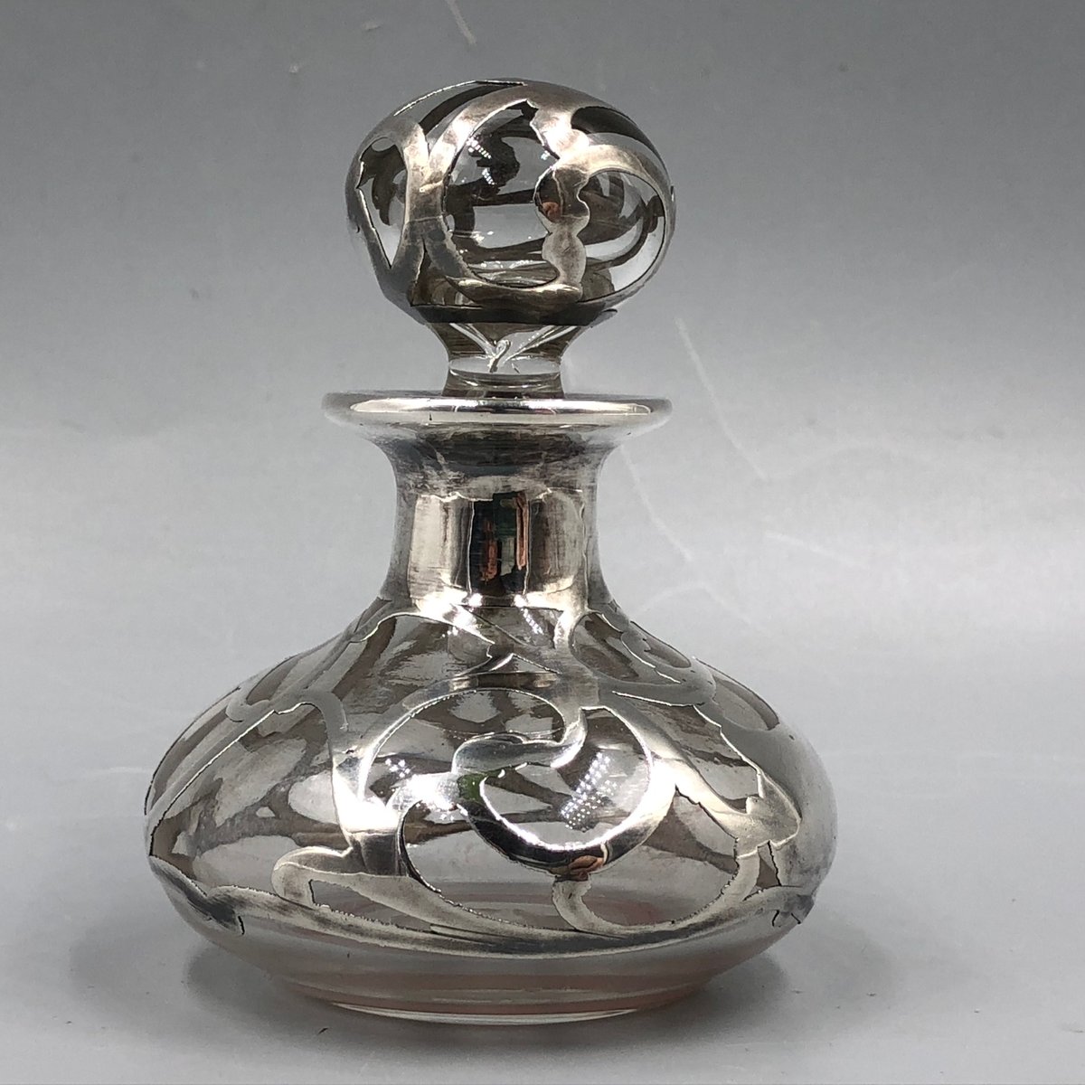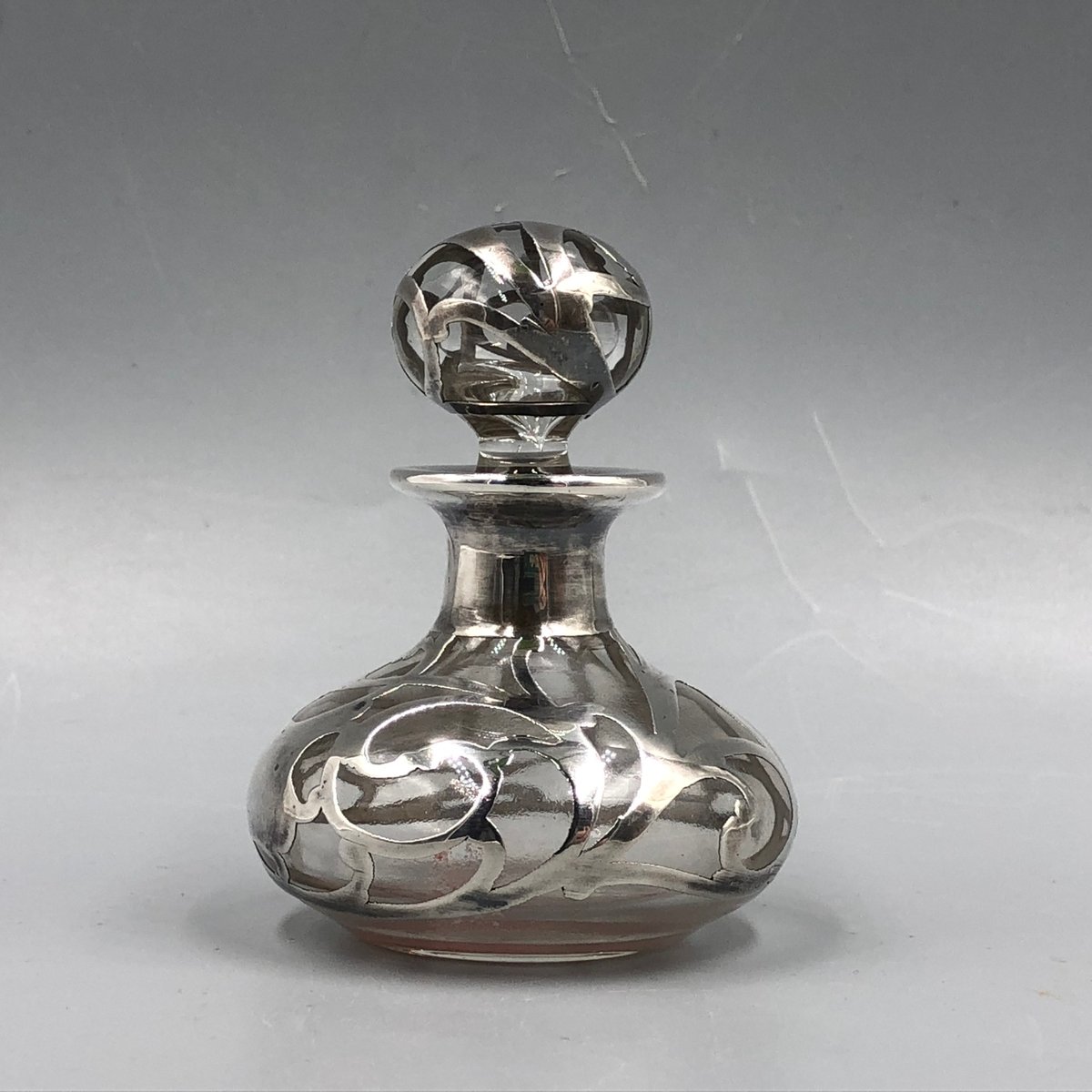 Antique Perfume Bottle in Sterling Silver Overlay, 1900s