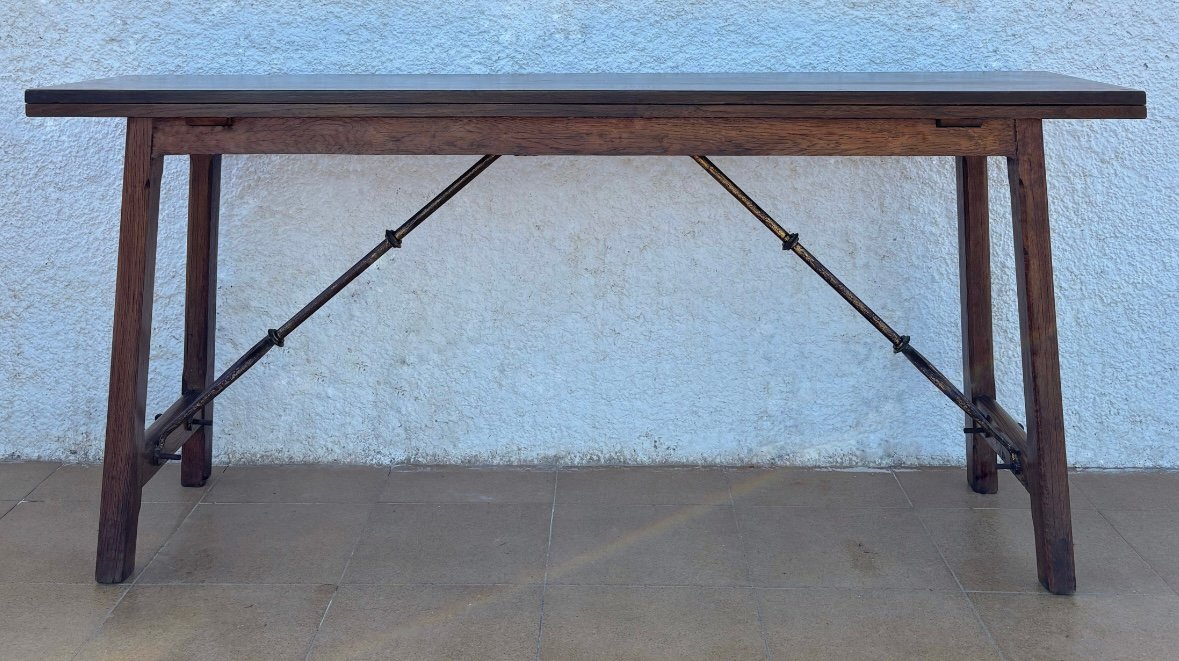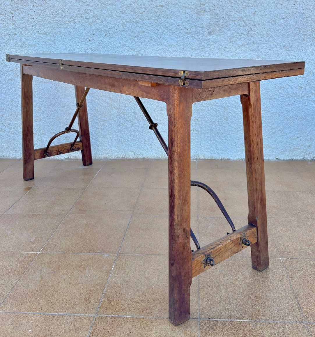 Antique Spanish Bourgeois Walnut Fold Out Table