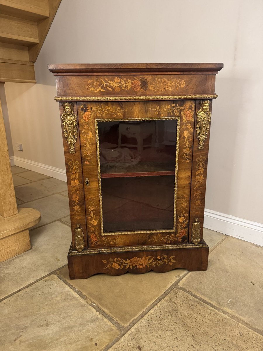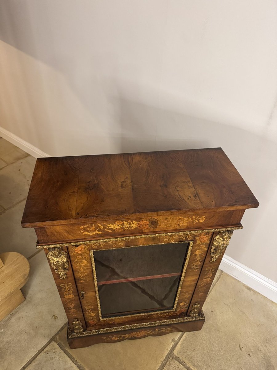 Antique Victorian Walnut Marquetry Inlaid Pier Cabinet, 1860