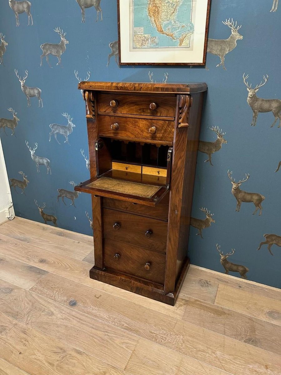 Antique Walnut Wellington Chest of Drawers with Secretary