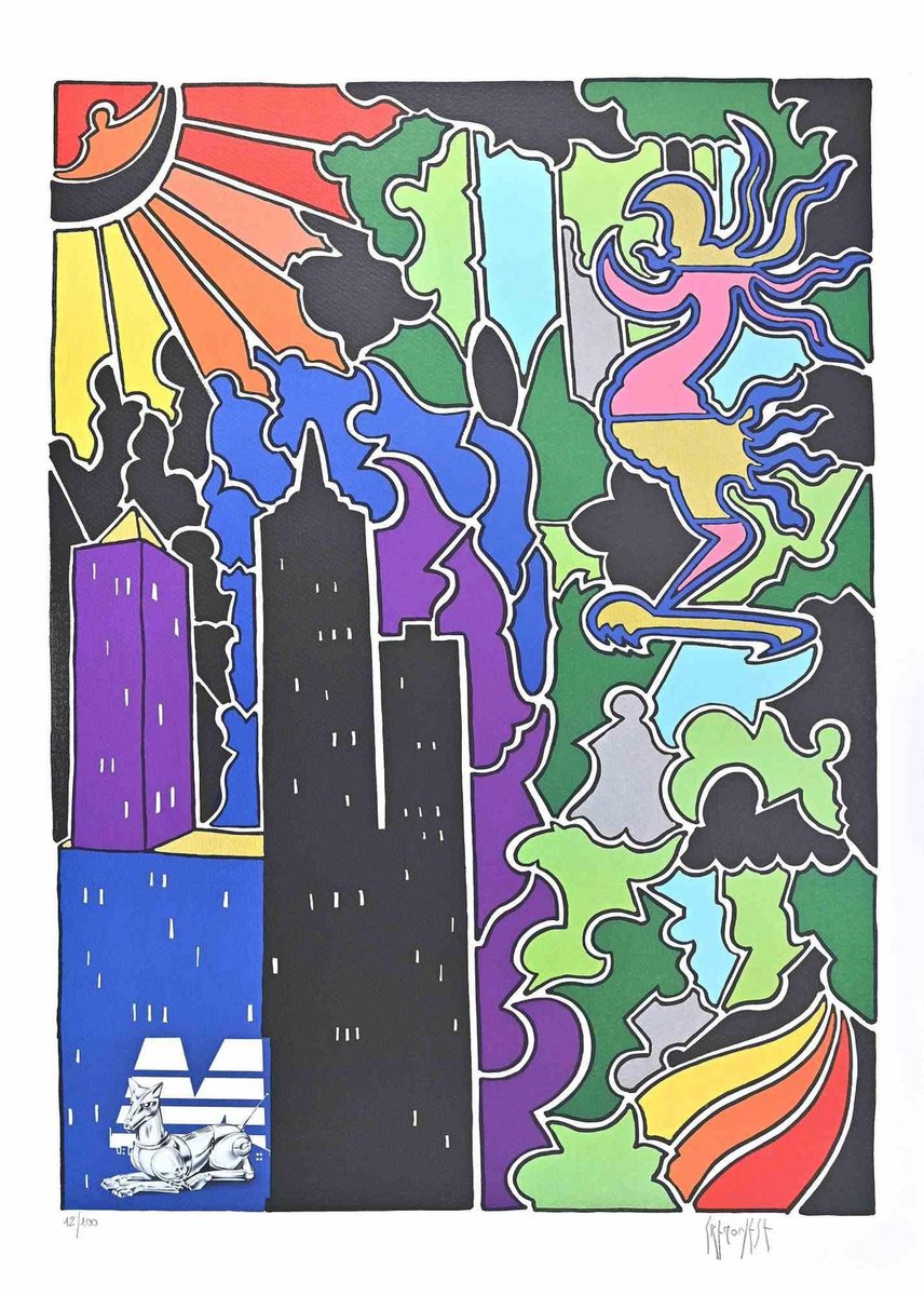 Antonio Cremonese, Abstract Urban Landscape, Lithograph, Late 20th Century