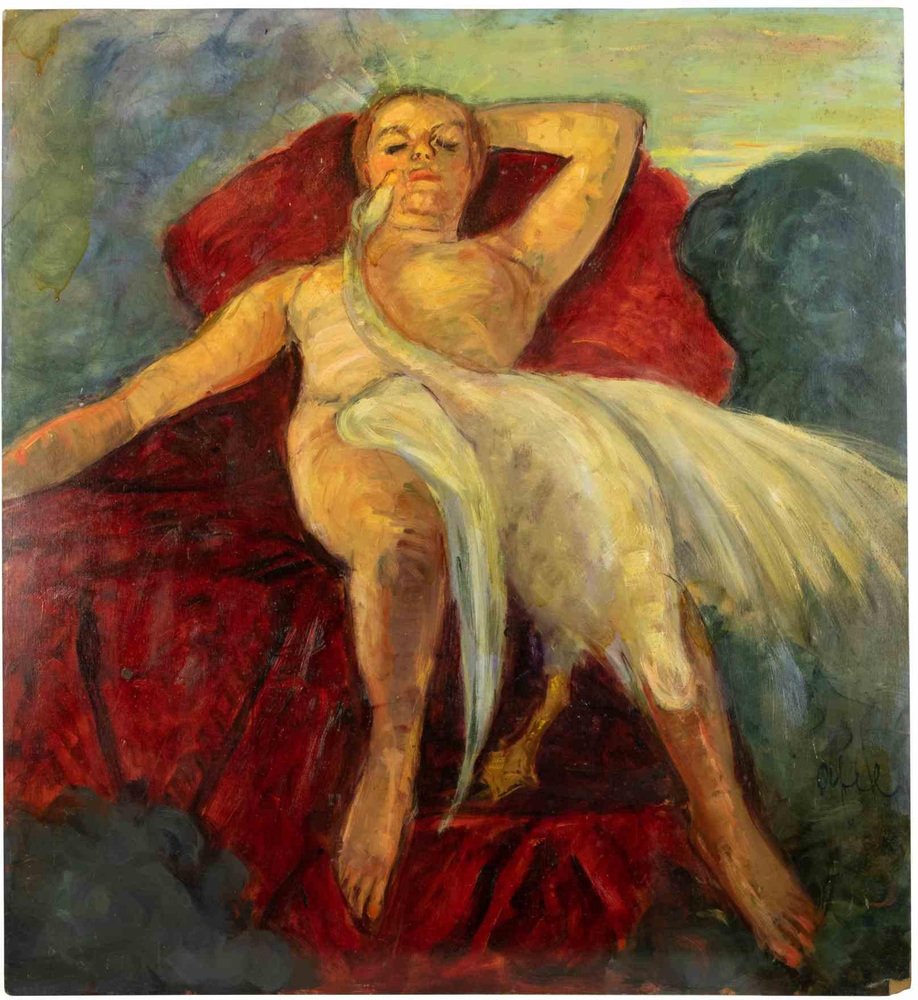 Antonio Feltrinelli, Model with Swan, Oil Painting, 1930s