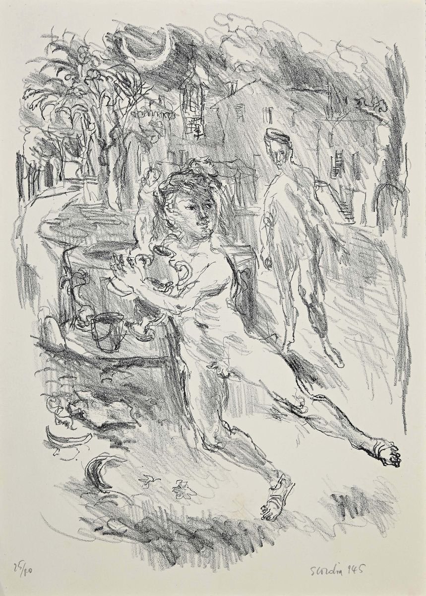 Antonio Scordia, The Escape, Original Lithograph, 1945