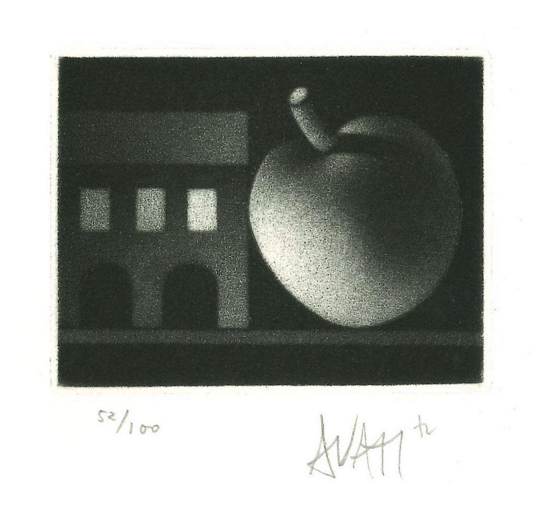 Apple and House - Original Etching on Paper by Mario Avati - 1970s 1970s