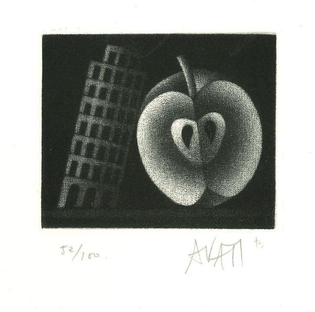 Apple and Tower - Original Etching on Paper by Mario Avati - 1960s 1960s