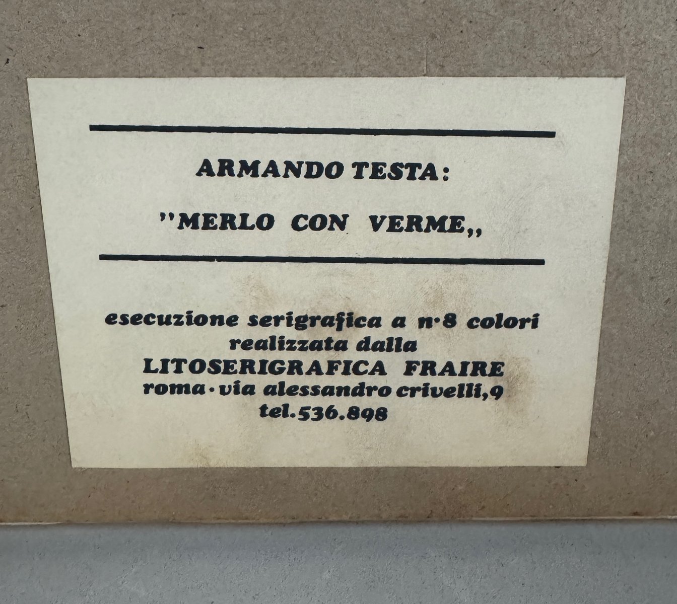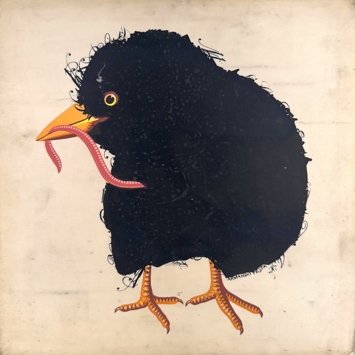 Armando Testa, Blackbird with Worm, 8-Color Silkscreen, 1969