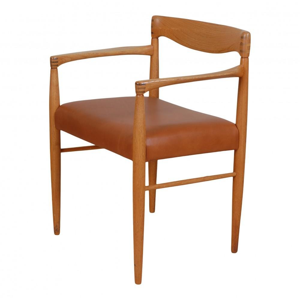 Armchair in Walnut Aniline Leather & Oak by H.W. Klein