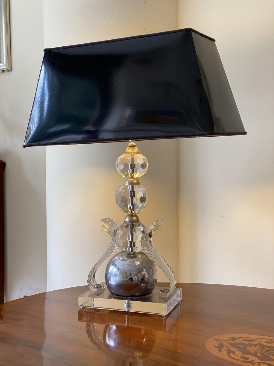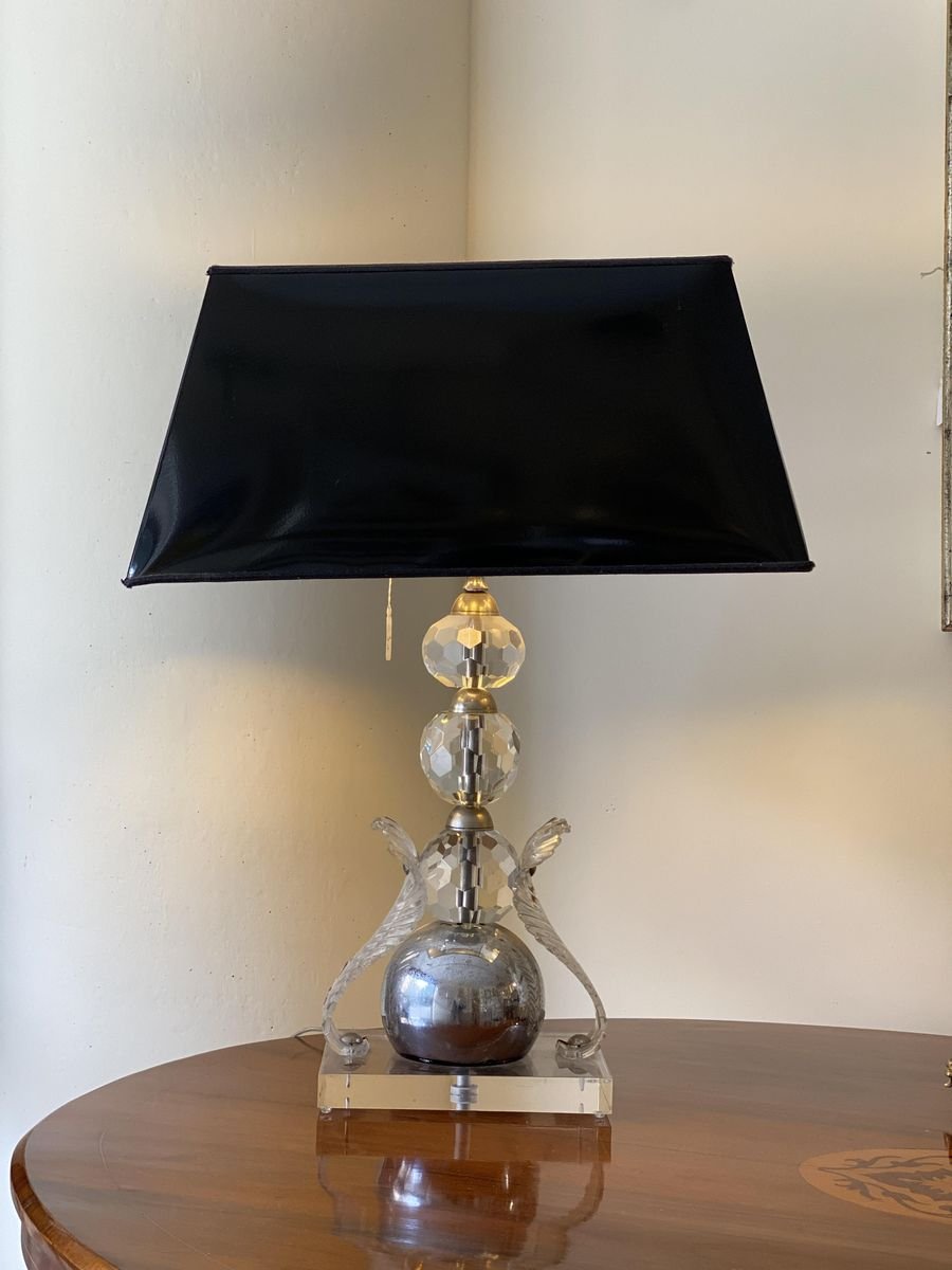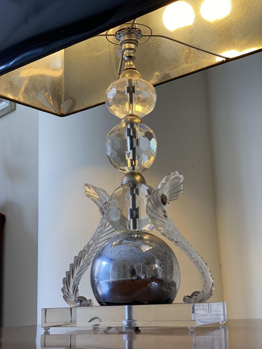 Art Deco American Crystal & Acrylic Glass Table Lamp, Late 1930s