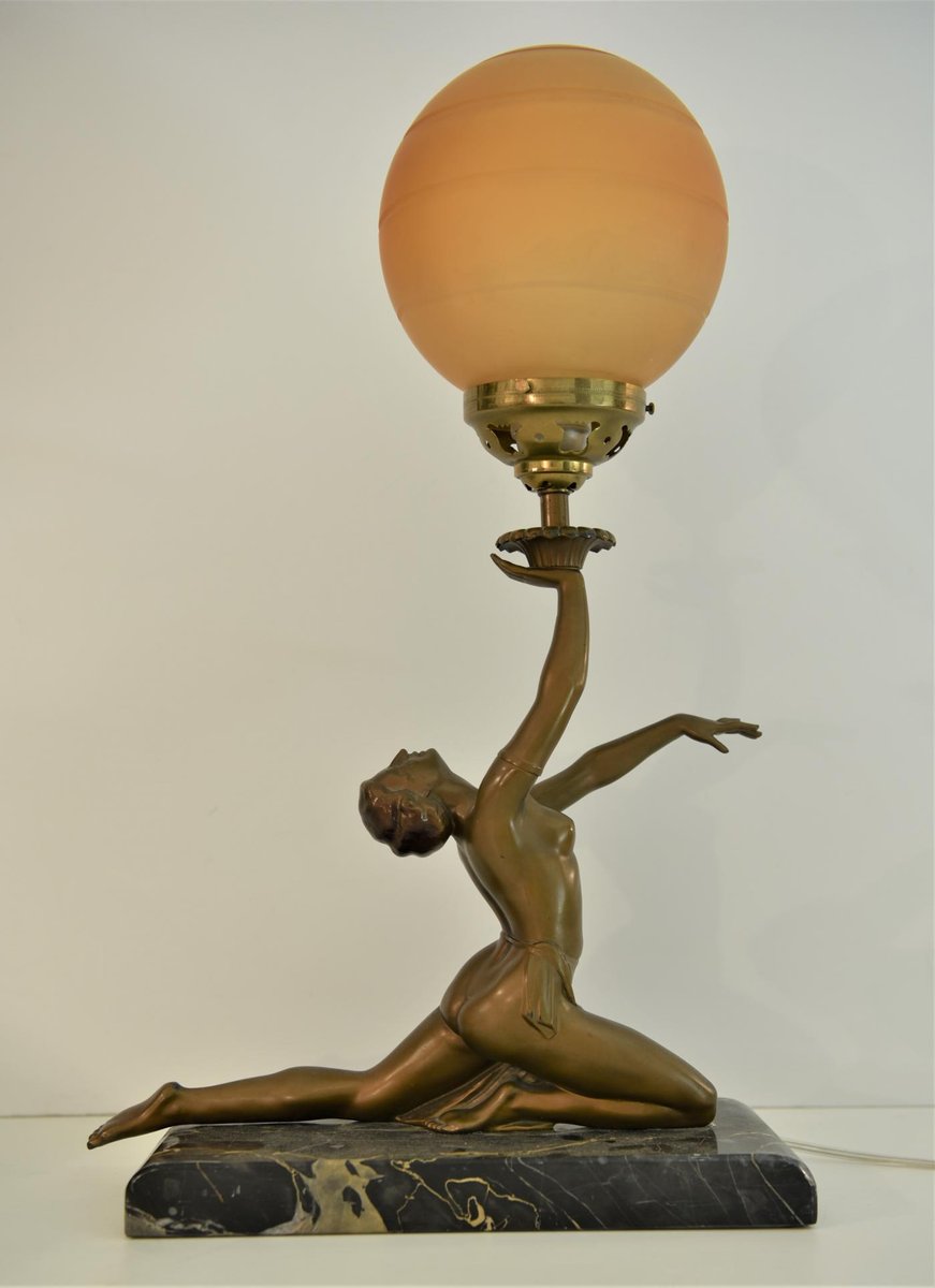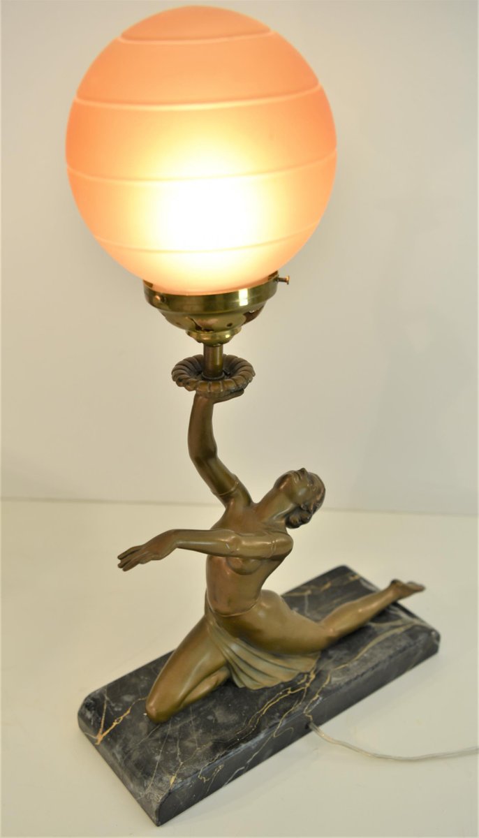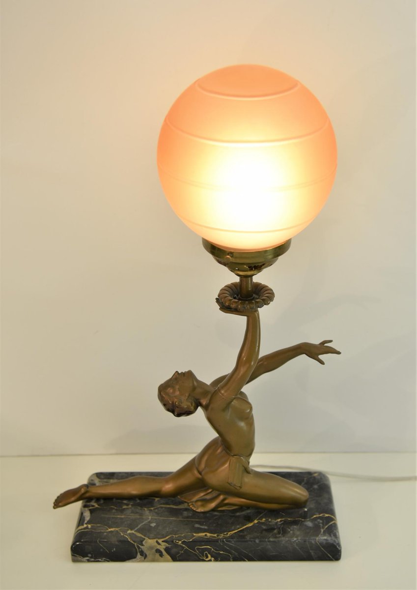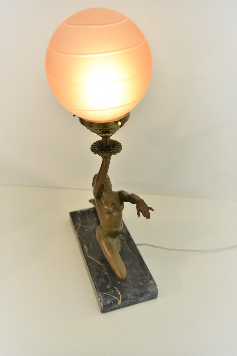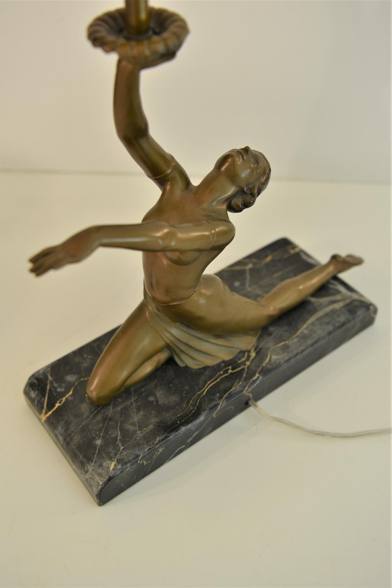 Art Deco Bronze, Patinated Metal and Marble Table Lamp, 1930s