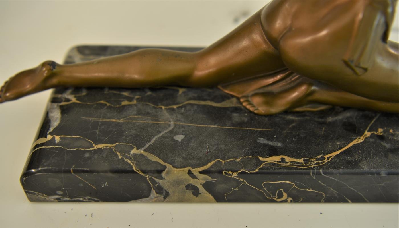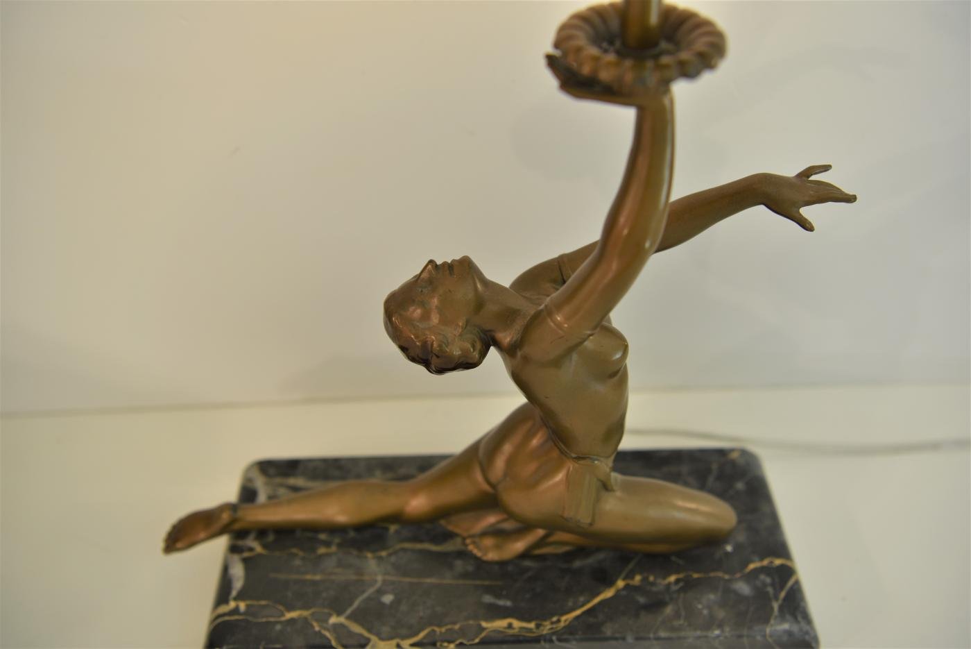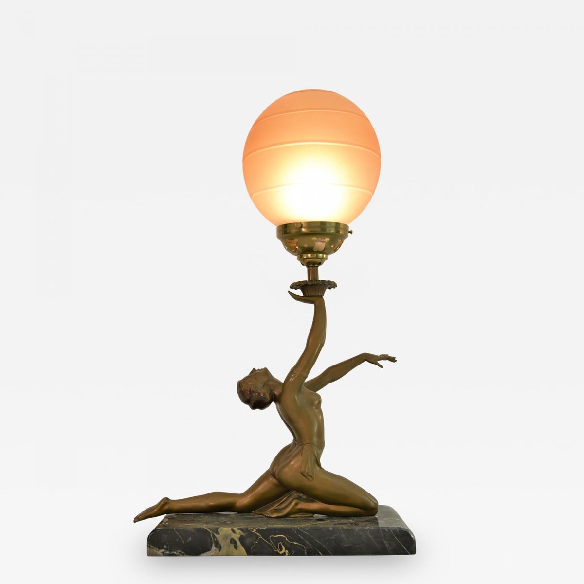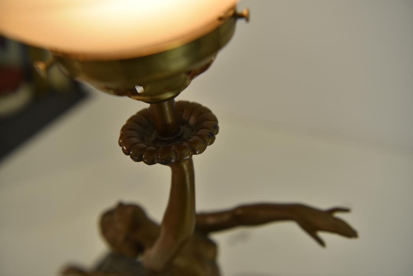 Art Deco Bronze, Patinated Metal and Marble Table Lamp, 1930s