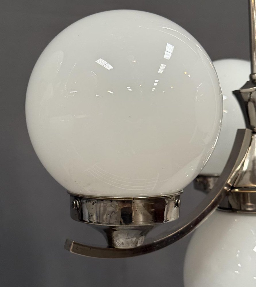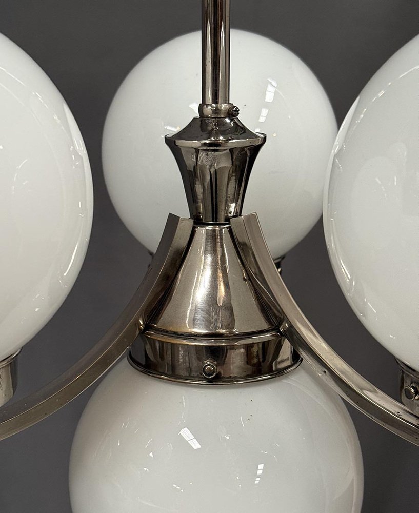 Art Deco Chrome Pendant with Opaline Glass, 1930s
