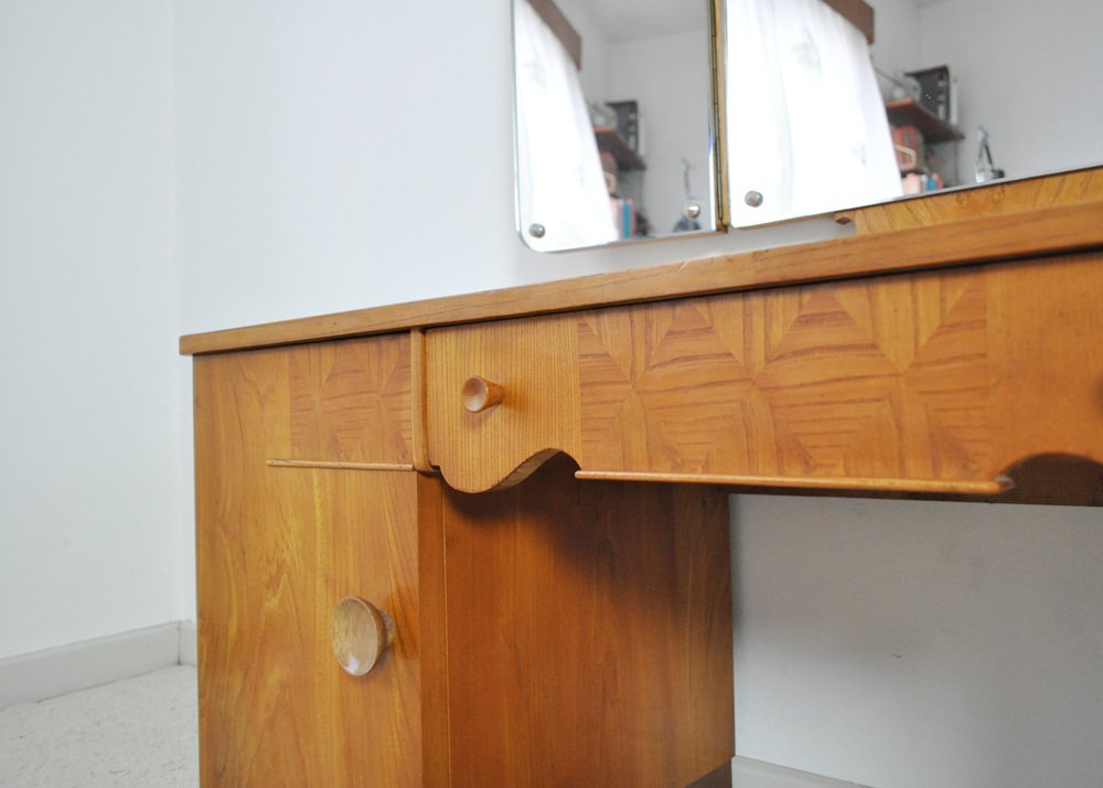 Art Deco Danish Vanity Desk with Tri-Folding Mirror, 1930s