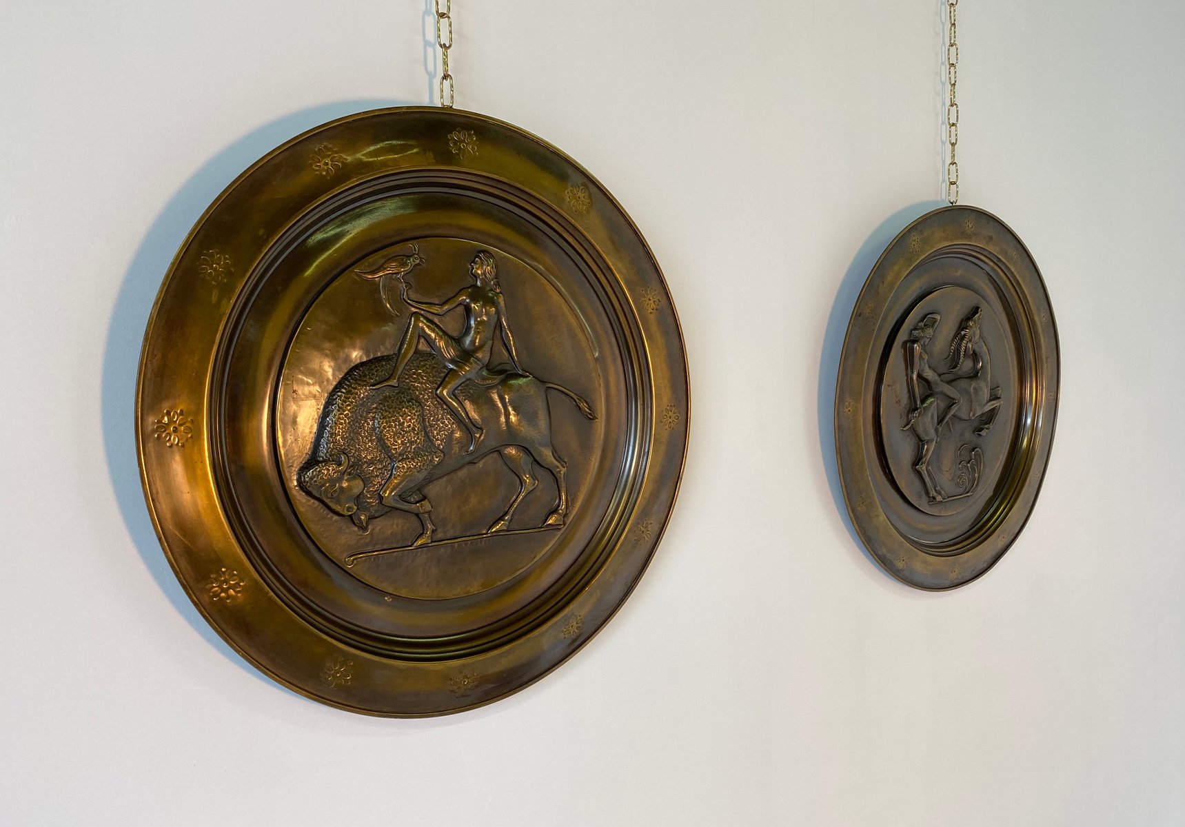 Art Deco Decorative Brass Plates, 1940s, Set of 2