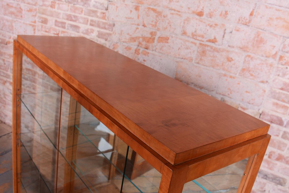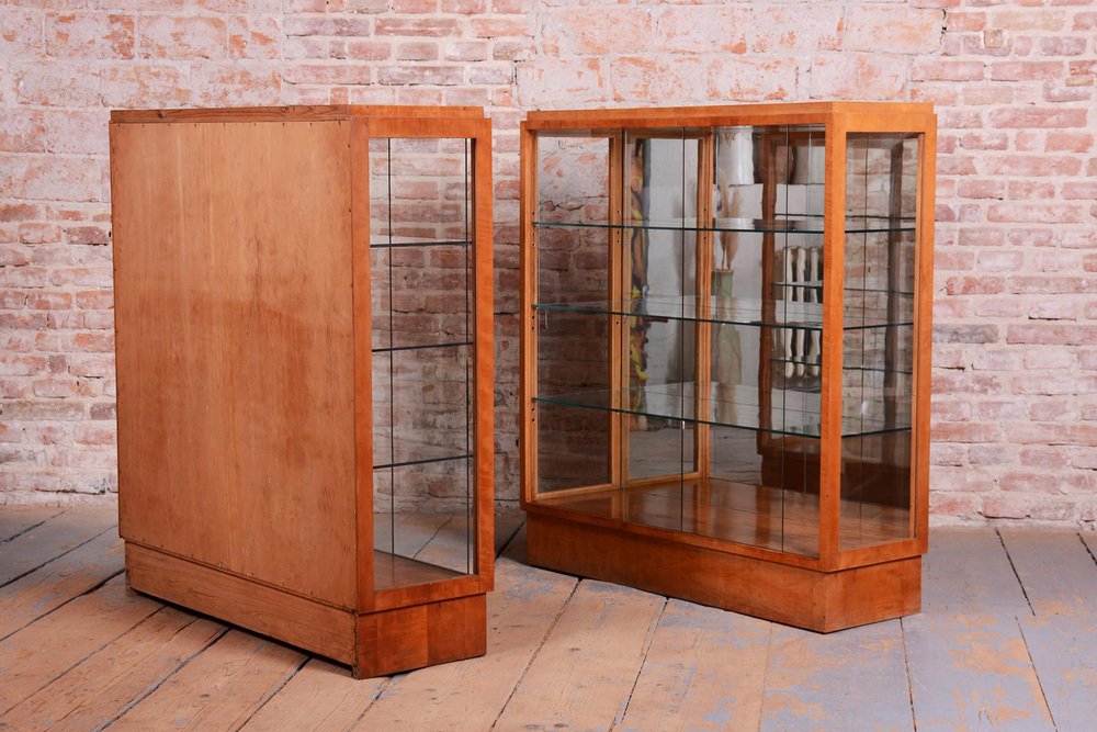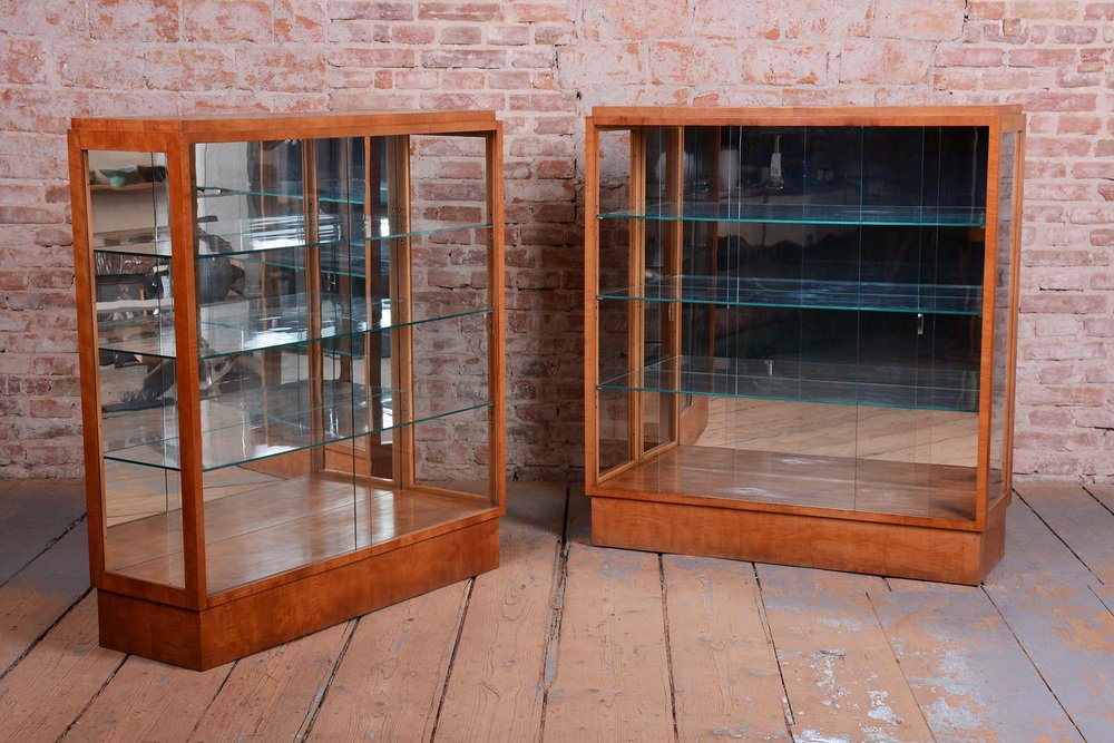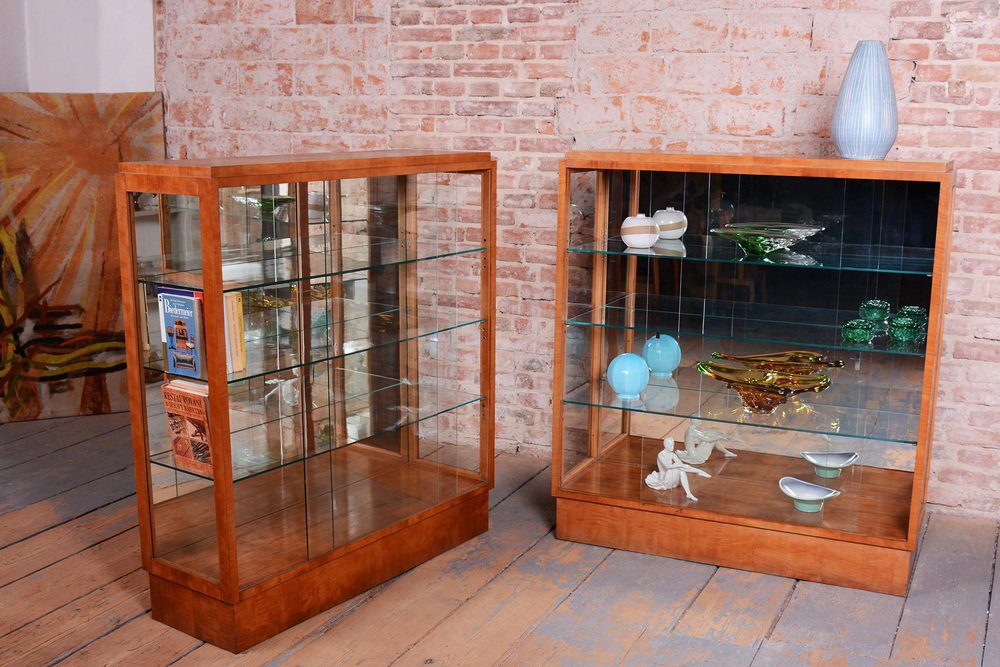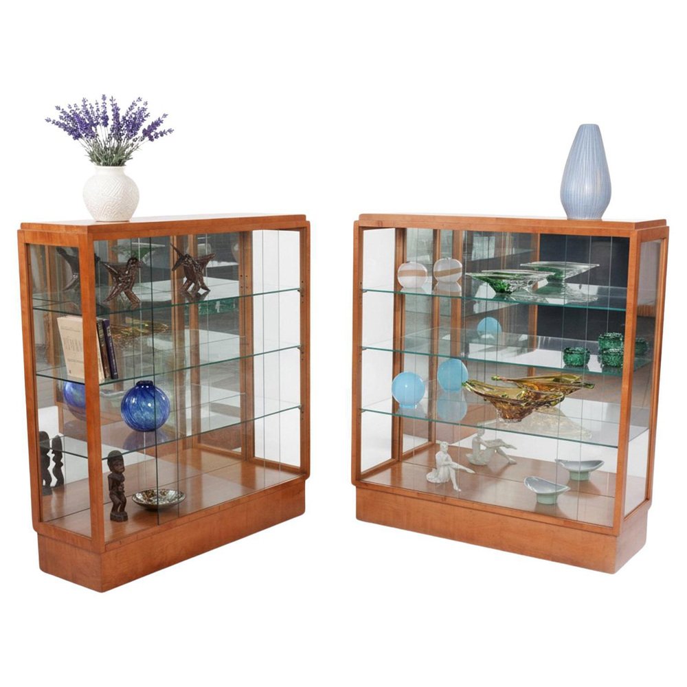 Art Deco Display Cabinets in Maple, Glass, and Mirror, Czech, 1930s, Set of 2