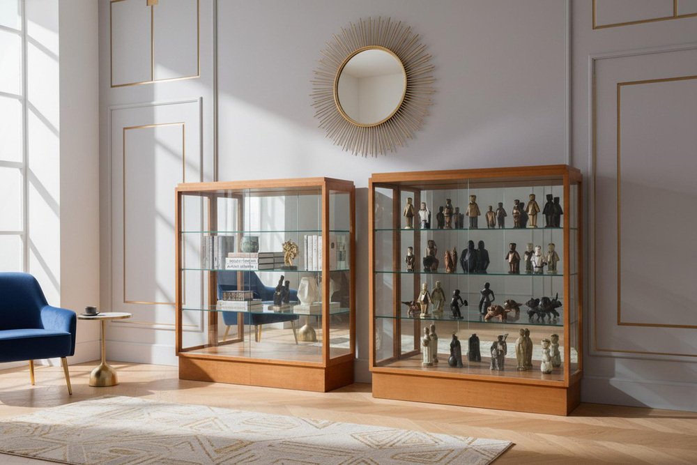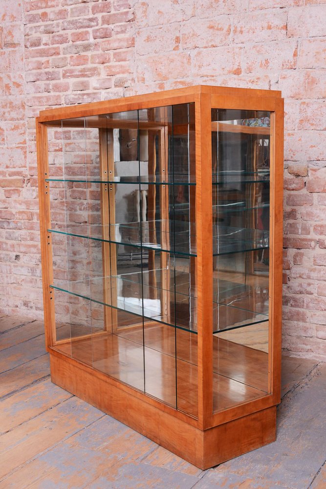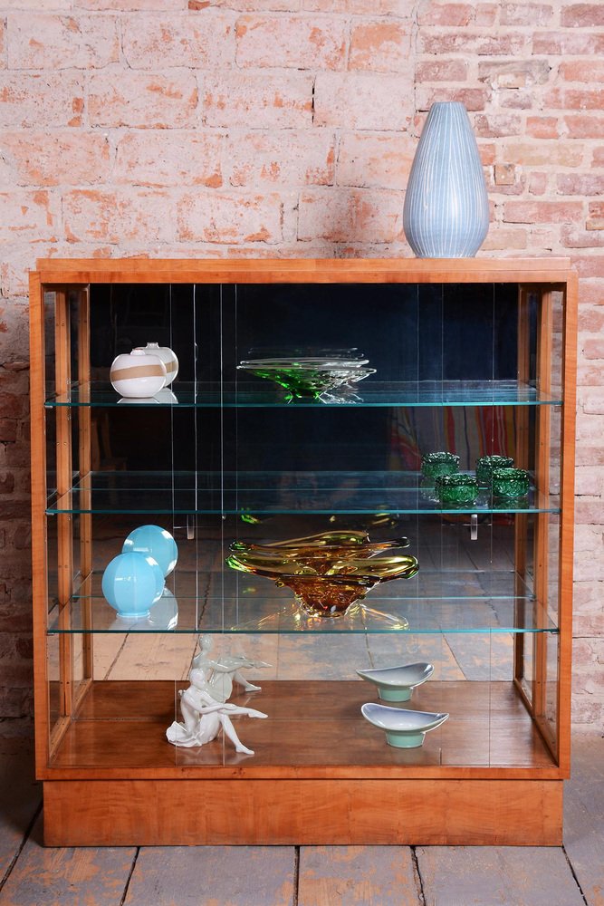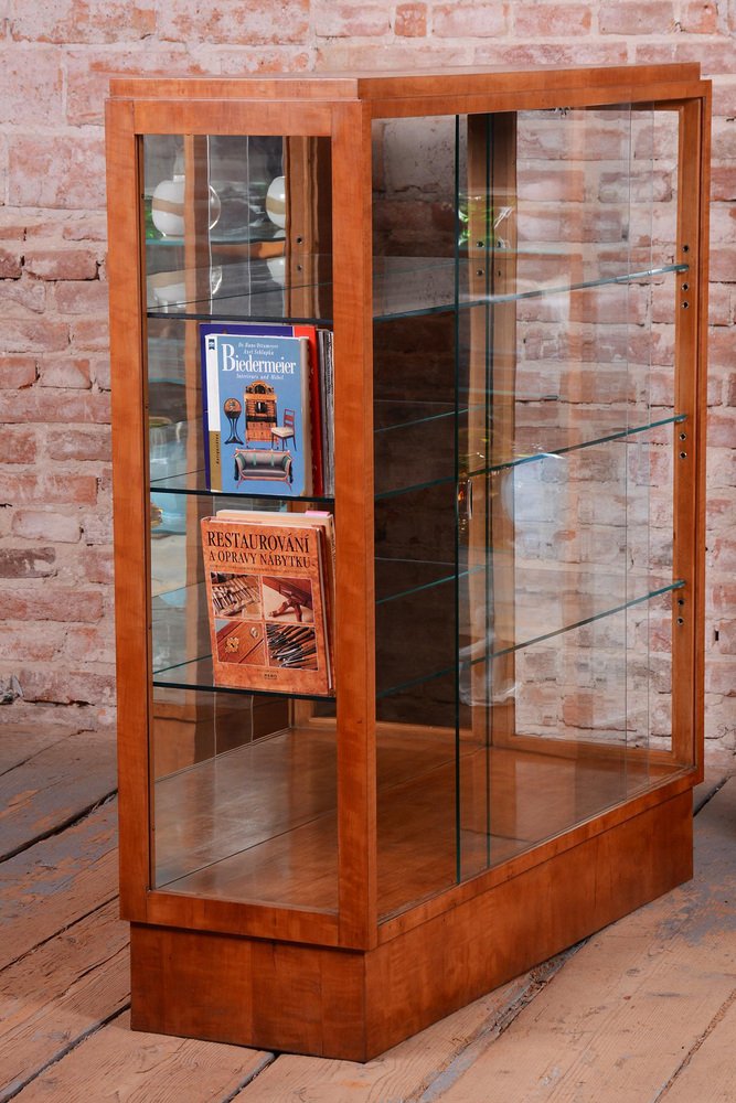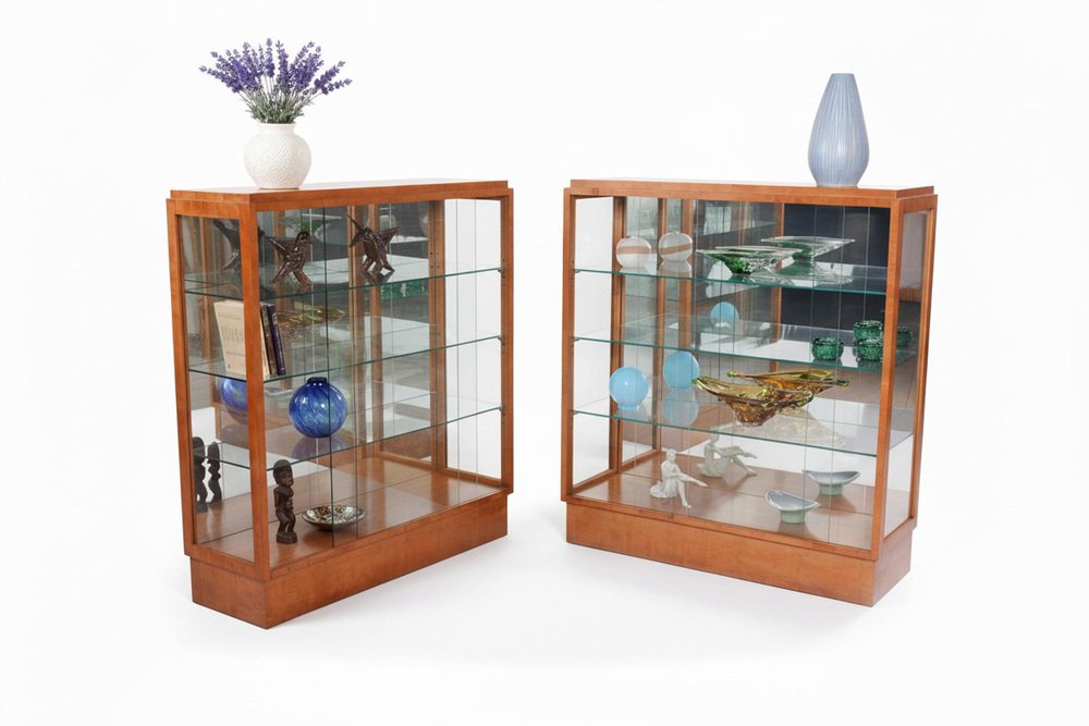 Art Deco Display Cabinets in Maple, Glass, and Mirror, Czech, 1930s, Set of 2