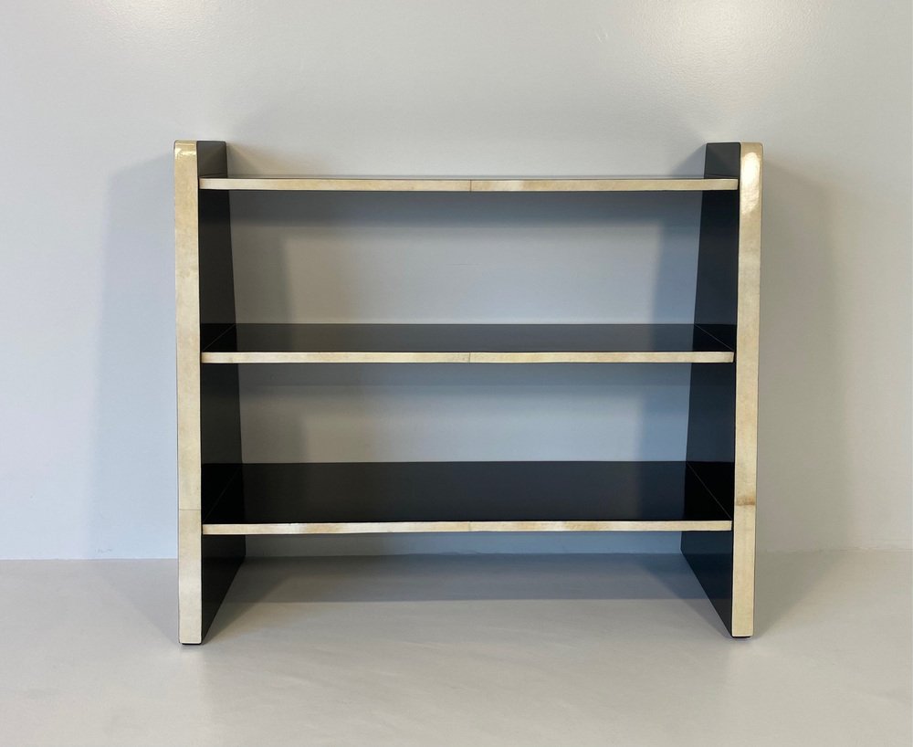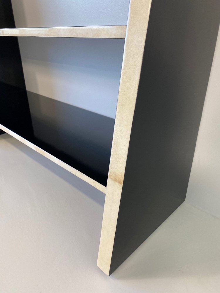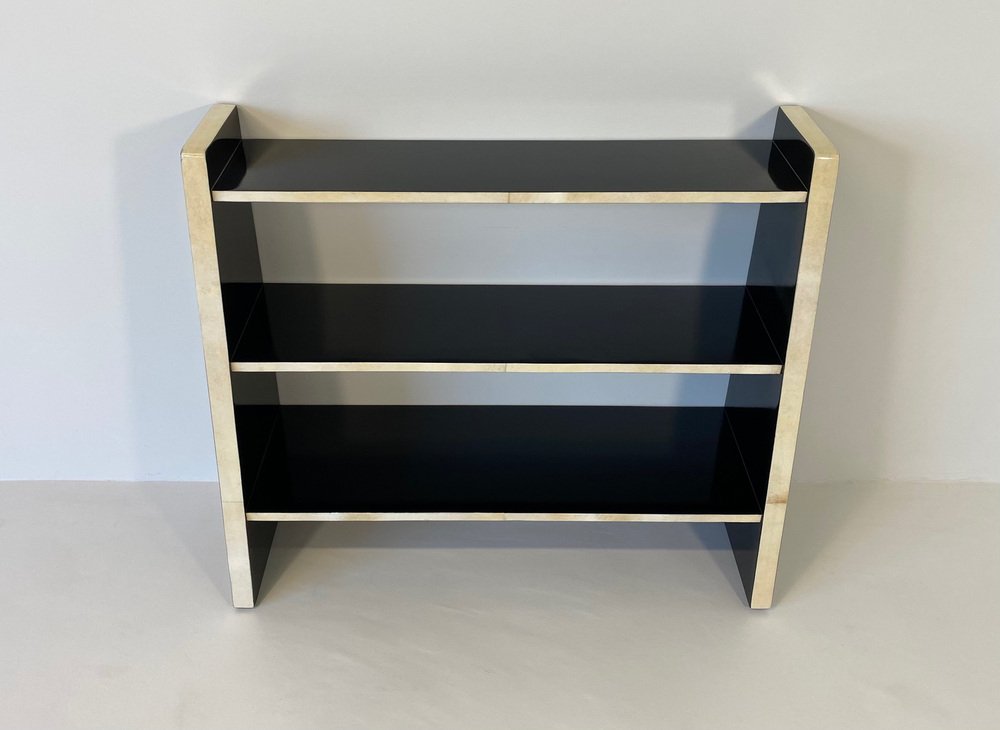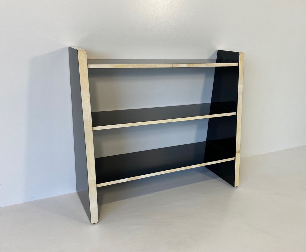 Art Deco Italian Parchment and Black Lacquer Bookcase, 1980s