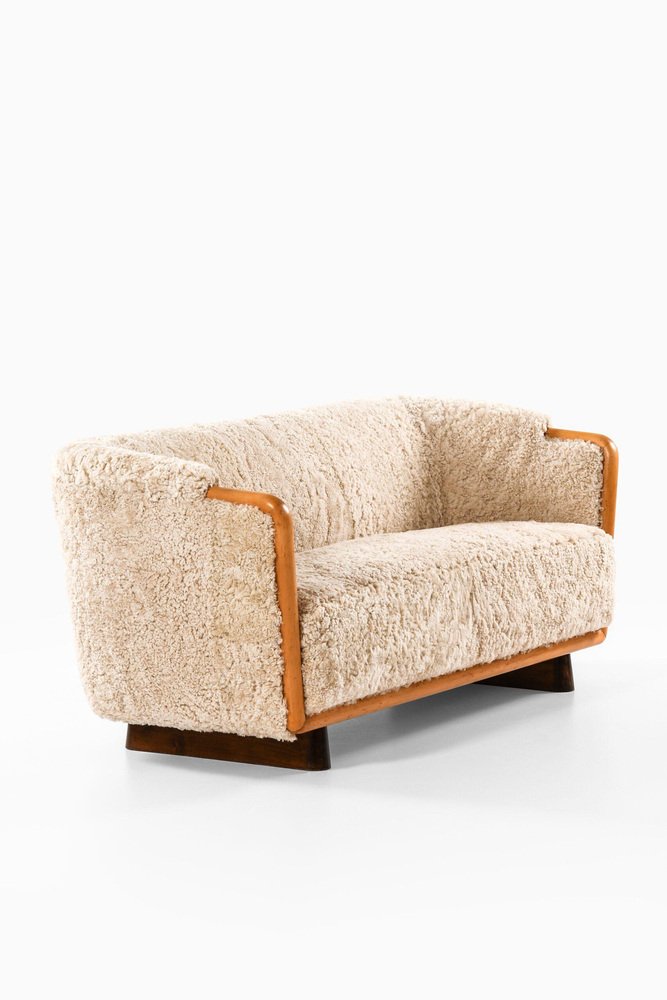 Art Deco Scandinavian Sofa in Birch and Sheepskin, 1930s
