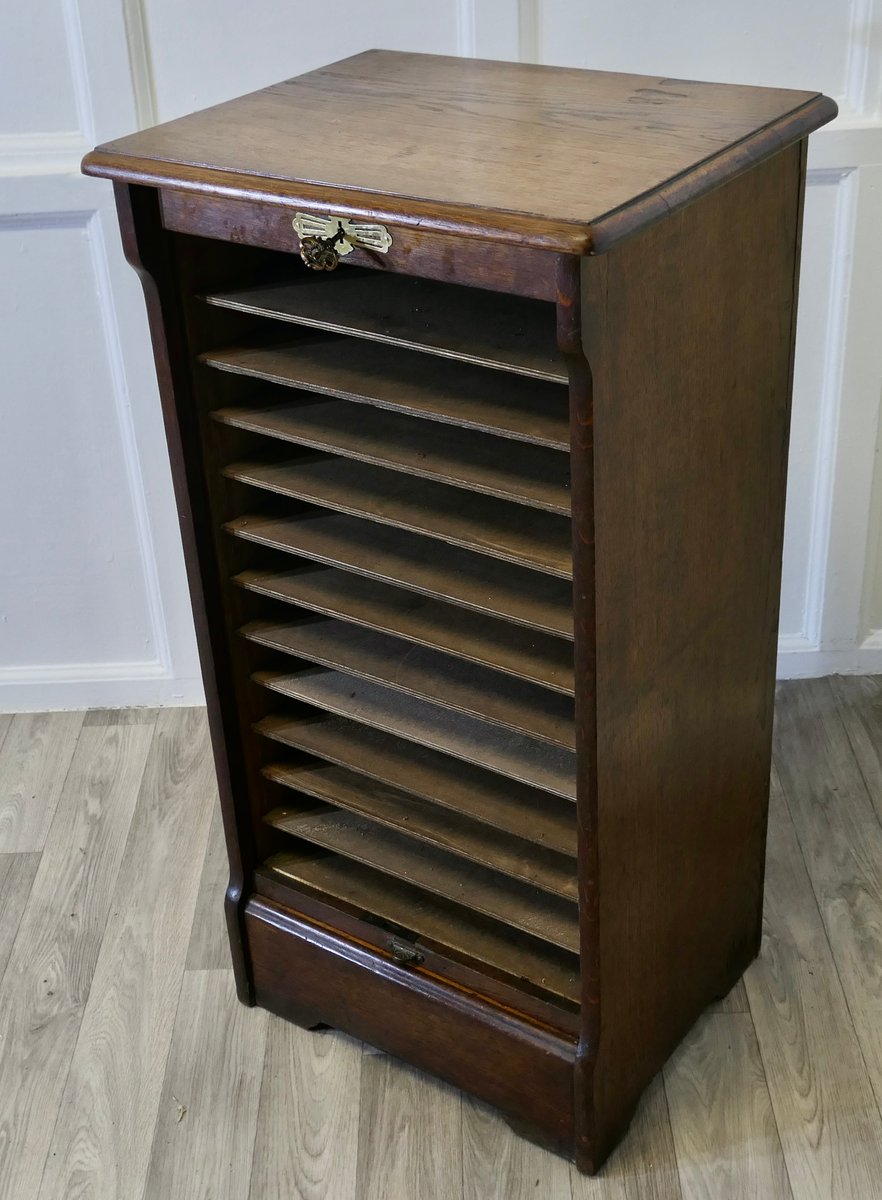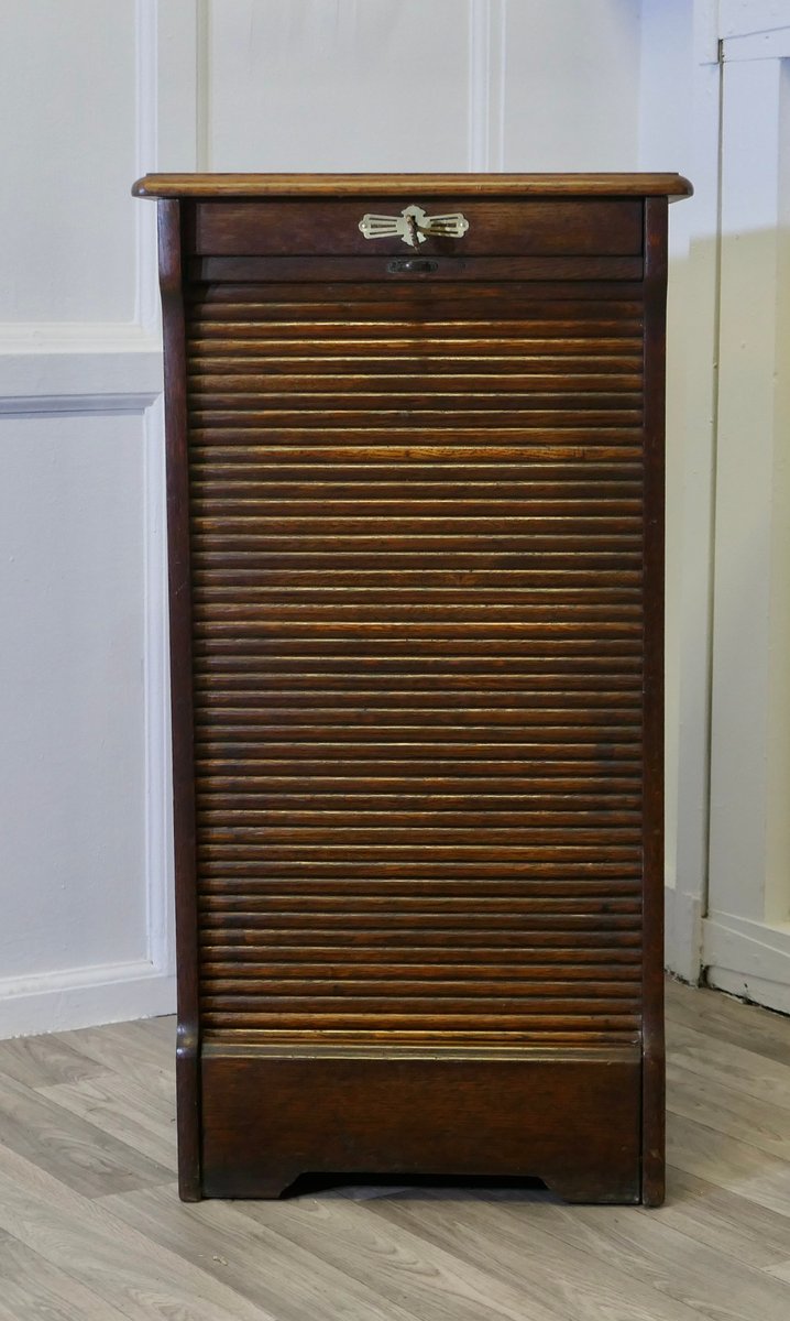 Art Deco Tambour Fronted Oak Filing Cabinet, 1890s