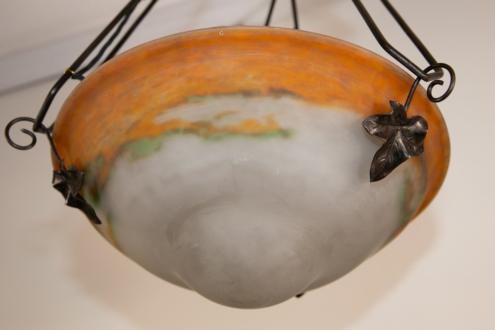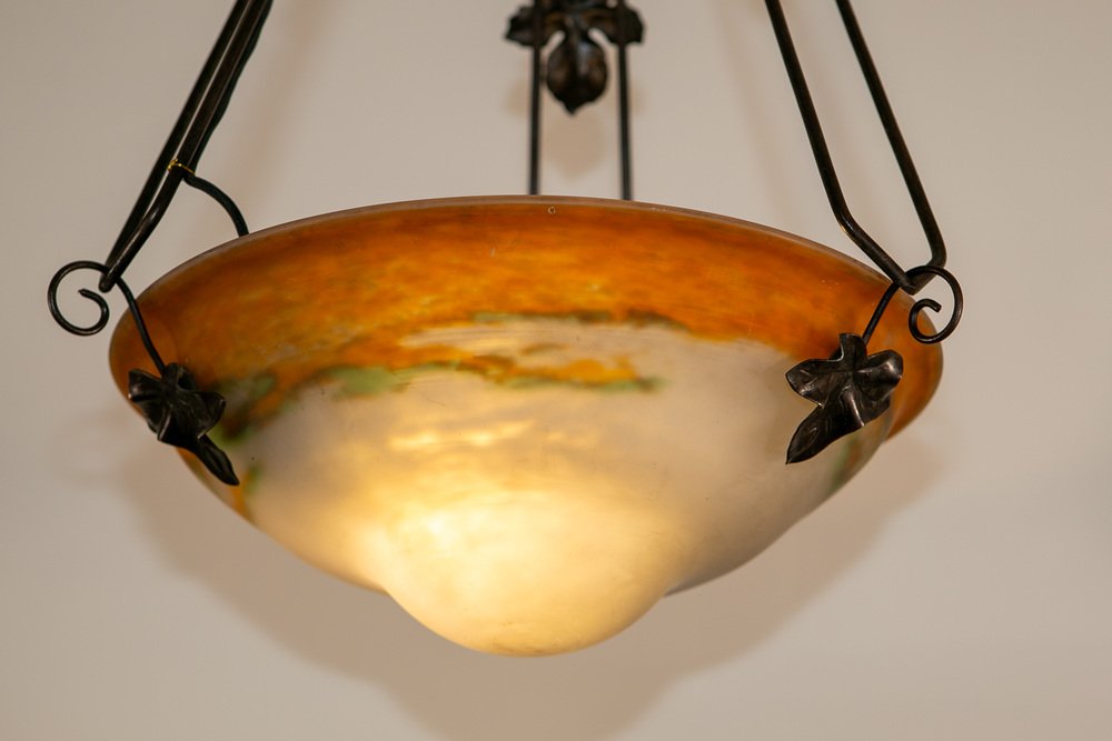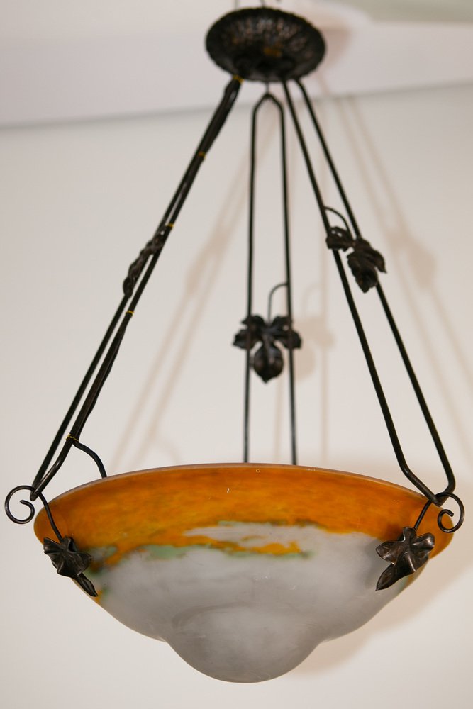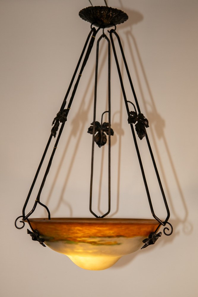Art Deco Wrought Iron Ceiling Light from Muller Freres Luneville, France, 1930s