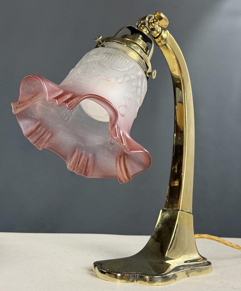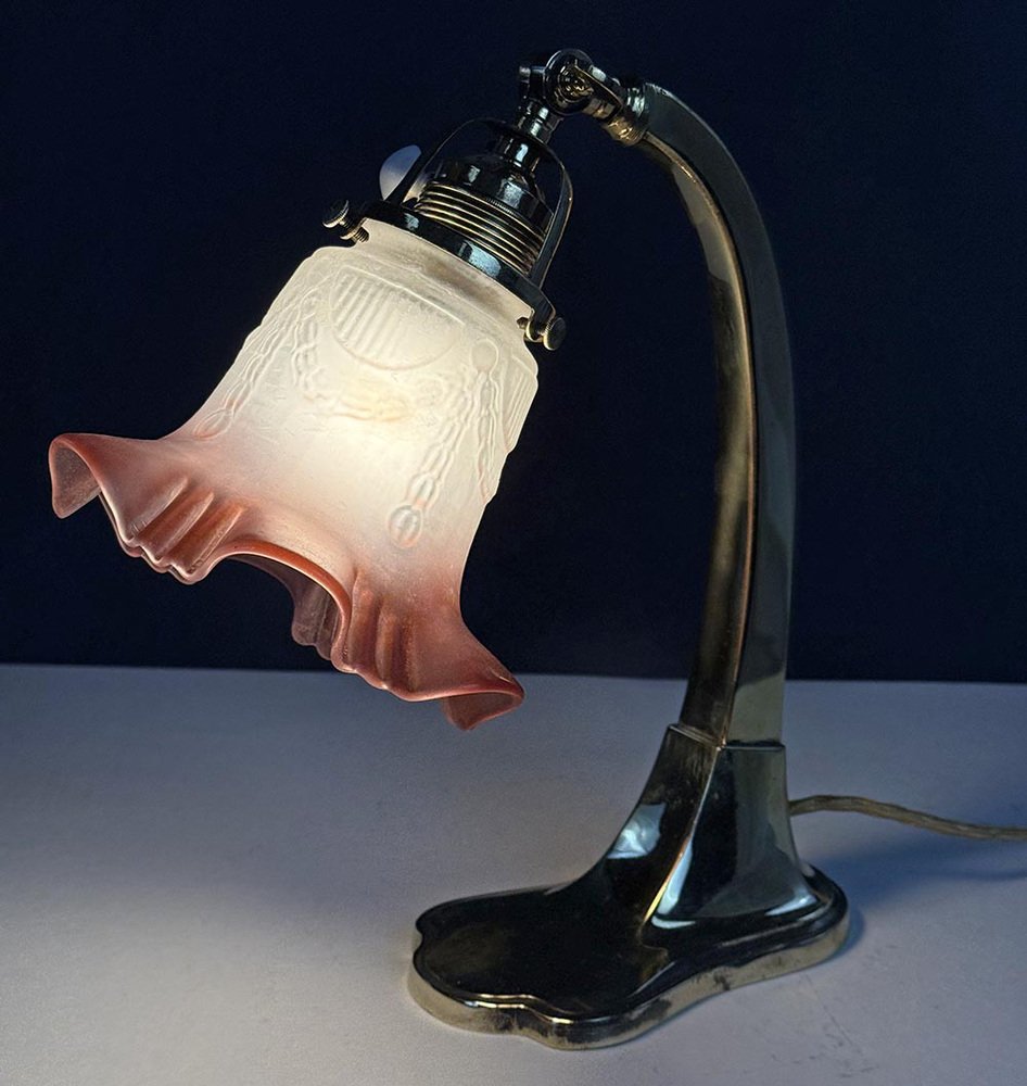 Art Nouveau Brass Table Lamp, Bohemia, 1910s