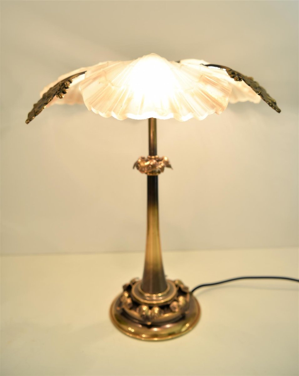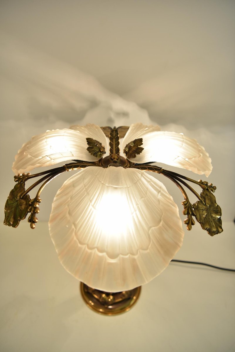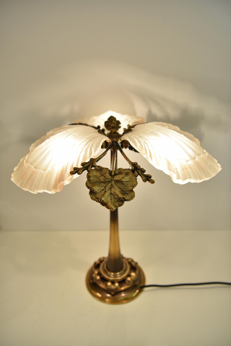 Art Nouveau Bronze and Frosted Glass Table Lamp, 1950s