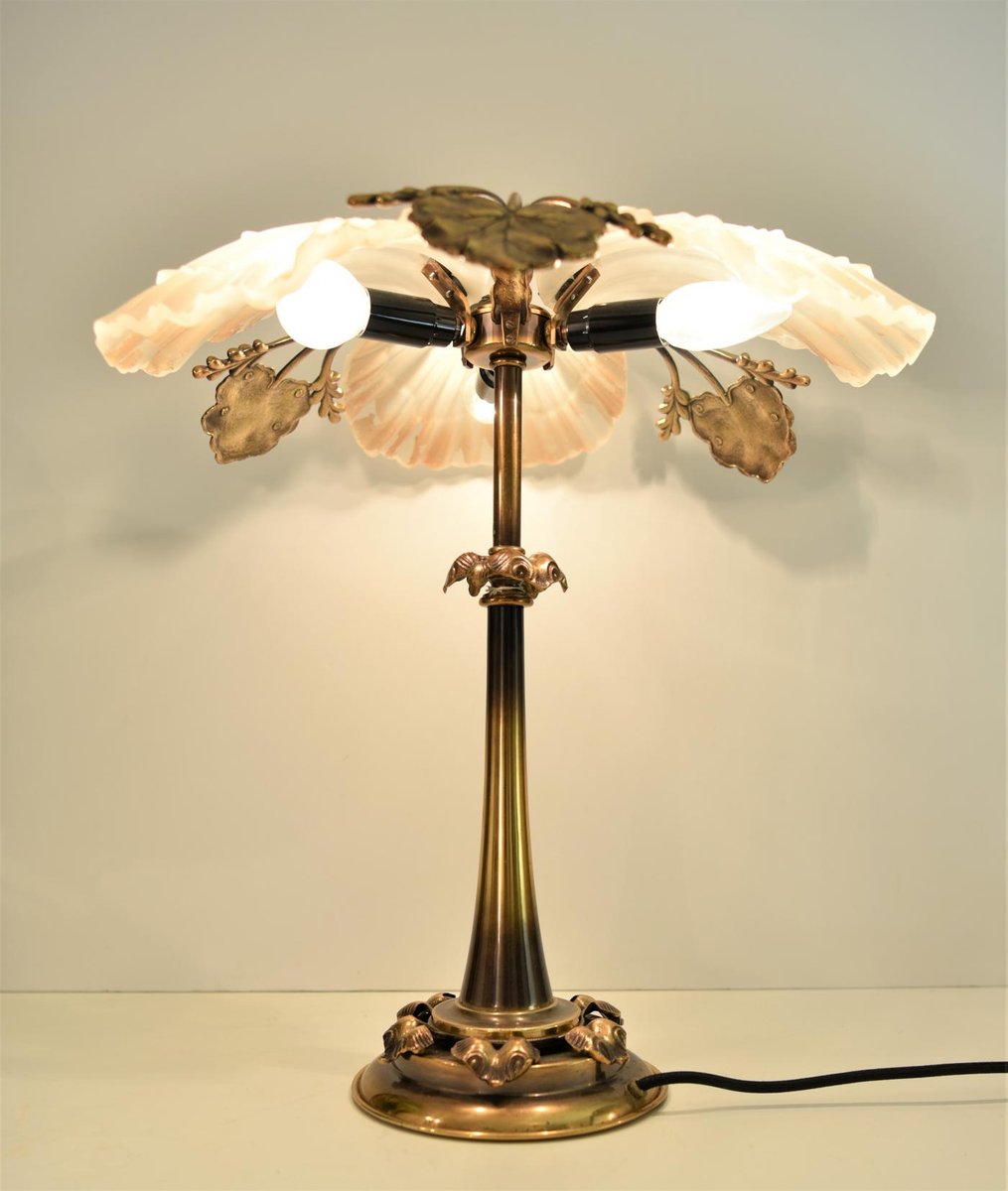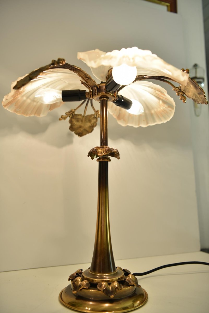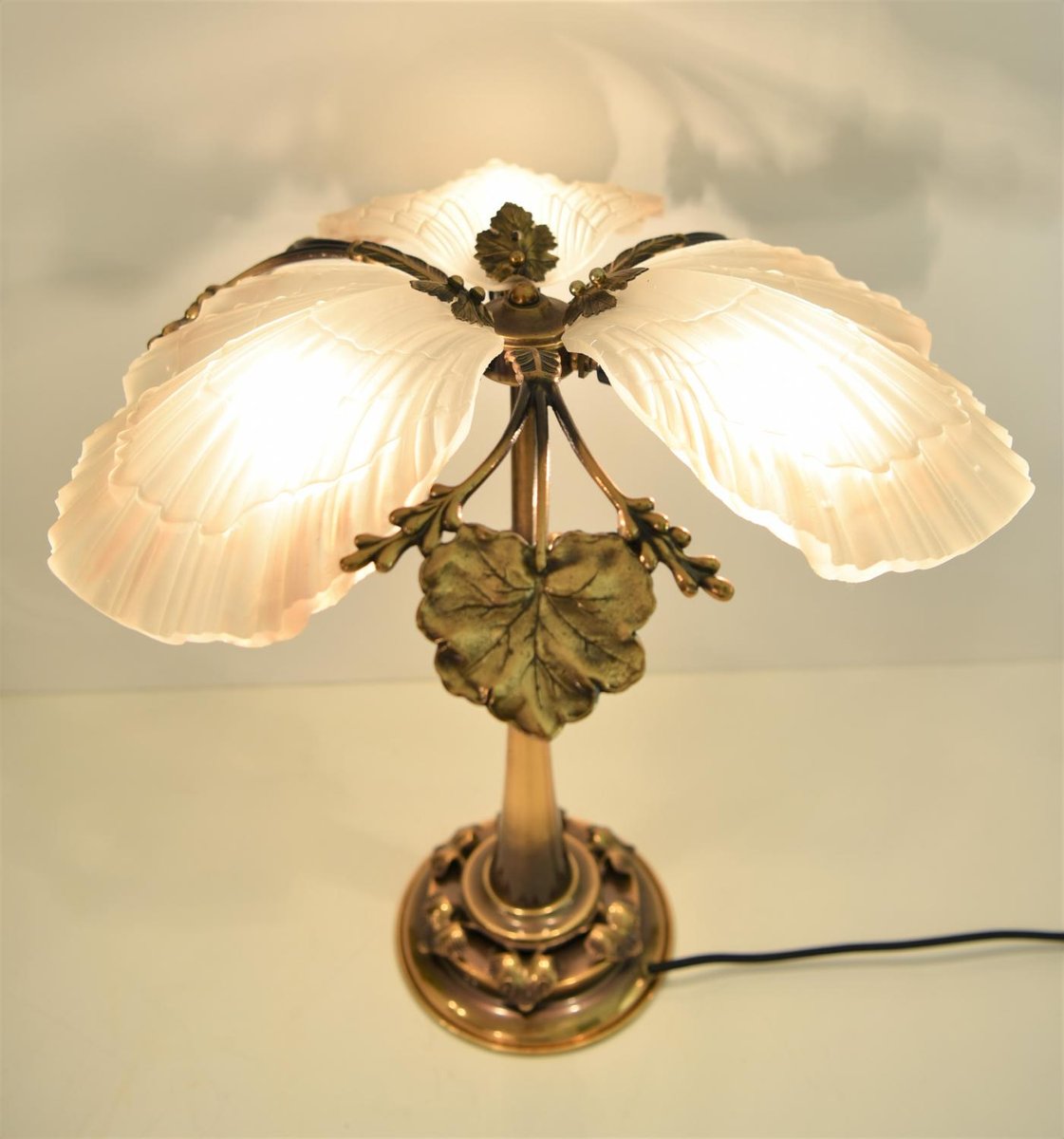 Art Nouveau Bronze and Frosted Glass Table Lamp, 1950s